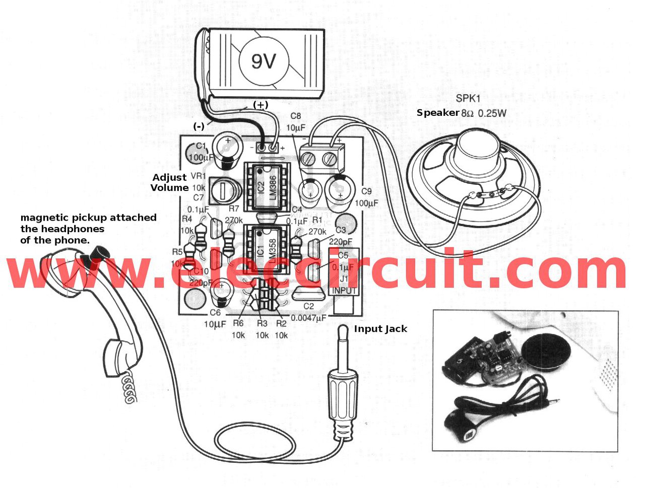 A változtatás annyi, hogy az R3 az 1 M és a R6 1 K az erősítés miatt. Olvasva a szöveget a kapcsolásnál írja, hogy van egy szűrő a beszédhangnak. Azzal eddig nem volt értelme foglalkozni, ha annyira rossz a minősége így is. A végén piezó van nem mikrofon, de próbáltam mikrofonnal is azzal csak sistergés van.
