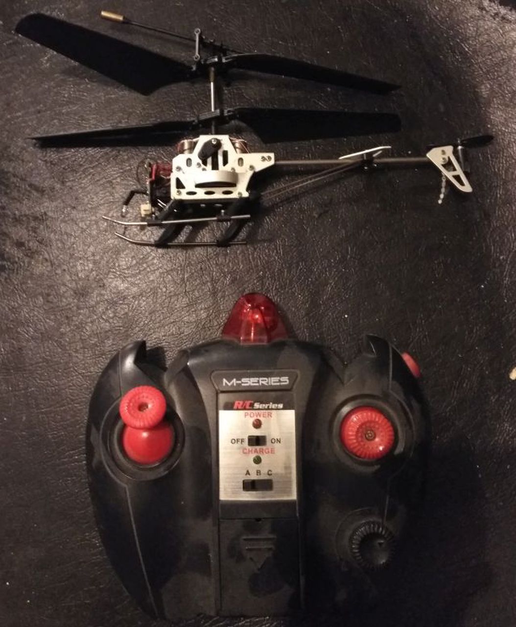 Egy IR helikopter modell, valami mechanikus hibája van, alkatrésznek.