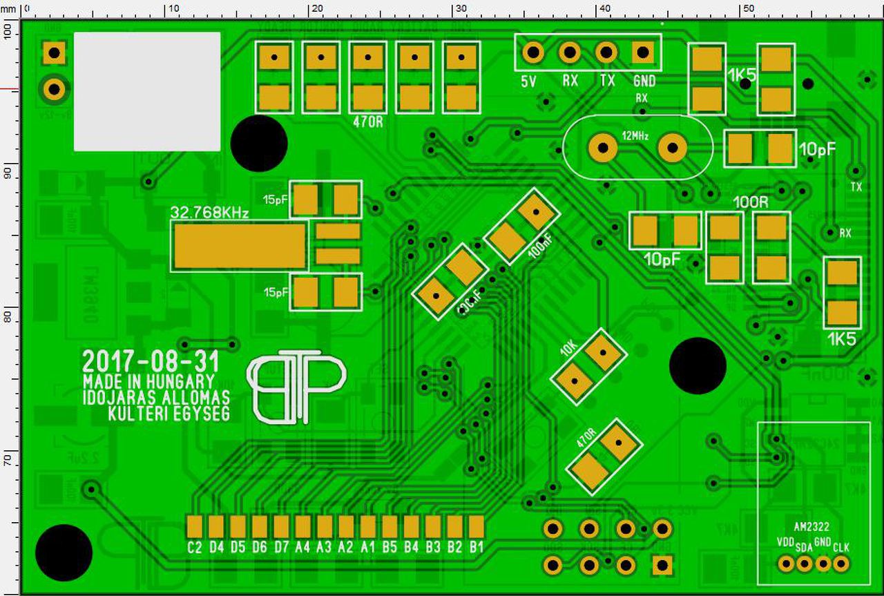 ![]() Sajnos oka van, még pedig a figyelmetlenség és tervezési hiba. Sajnos 4 hibát követtem el, amelyek rontják az összképet, ez az első panel, tehát prototípus. Az esetek többségében sajnos van tervezési hiba, de ez általában a projekt közben vagy éppen a program írása közben, ahogy fejlődik, úgy derül ki.. Szomorú, de szükségszerű az átkötés. Általában a végleges paneleken már nincs vagy nem lenne átkötés, mert nem mindig gyártódik le a végleges változat.