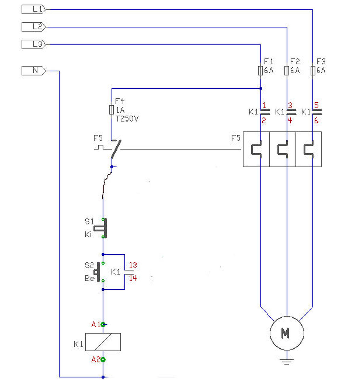 Értem. Így a vezérléshez szükséges "fázist" szakitja meg, ezálltal függetlenül a gomboktól megszűnik az öntarto állapot, a mágneskapcsoló tekercse elejt?