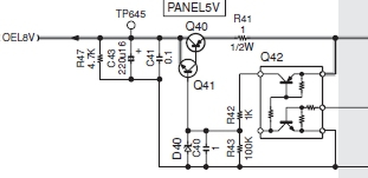 Van nálam egy Kenwood KDC-W9537U autórádió javítás alatt. A hiba, a kijelző háttérvilágítása gyenge (nem beállítás kérdése). Mikor tápfesz alá helyezem a készüléket, kb 0.2 mp-re teljes fényerőn világít, de aztán elhalványul. Van hozzá kapcs. rajzom, de csak az alaplaphoz, a kijelző rész csak modulként van jelölve. A meghajtó fokozatot képként csatolom. 8 Voltot kellene kapnia, amit meg is kap, arra az időre, de aztán visszaesik 2.2 V-ra. Ha nincs feltéve az előlap, akkor stabil 8V-ot ad a fokozat. Mivel a kijelzőről nincs rajzom, nem merem fix 8V-ra kapcsolni.