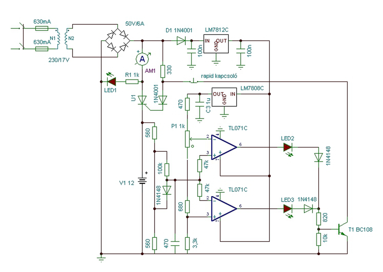 Segitséget szeretnék kérni ebbe az automata akkumulátor töltöbe megépítettem és "tölt" de az első nekifutásnál a 7812 ugy fort, hogy kiéget - kicseréltem azóta az LM358-as mind a 3-om ledet müködteti de miért viszont a 7812 már nem forr ja még egy kis probléma ha a nyitó kapcsoló be van kötve nem tölt csak ha kiforrasztom. TIC126 helyett BT 151-800R használom 10A-es töltés miatt Előre is köszönöm a segitségeteket! A hozzászólás módosítva: Nov 1, 2017