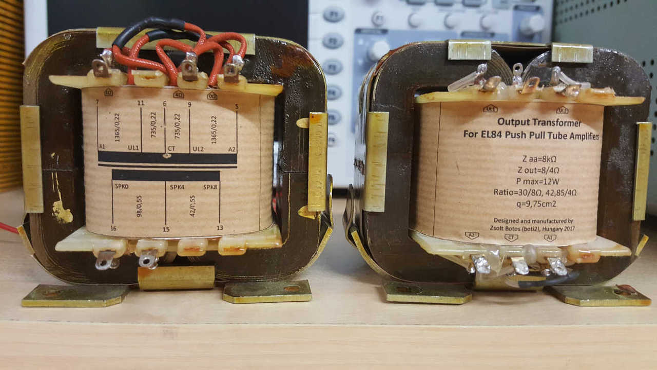 Másfelől pedig írtad: Idézet: „Ezzel nem értek egyet, az áttételt a menetszámok határozzák meg.” Bocsáss meg, de az áttételt nem a menetszámok határozzák meg, hanem a számított áttételből és számított primer menetszámból számítjuk a szekunder menetszámot. A primer menetszámot a primer induktivitásból, a közepes erővonalhosszból, a mag permeabilitásából és a vaskeresztmetszetből számítjuk. Az áttételt Za-ból Zszekuder terhelésből és hatásfokból számítjuk. (A hatásfokot ezek szerint te nem veszed figyelembe.) Ezután számítható a szekunder menetszám az áttétel, és így tovább... Ha valakit egyébként érdekel, szívesen odaadom neki az erre a célra készített excelt számolótáblát, ami megkönnyíti a kimenőtranszformátorok méretezését és tartalmaz különféle számítási módokat, lehetővé téve az összehasonlítást. Ez természetesen nem ad tekercselési tervet, szigetelőanyag választást, stb. Nem kívántam okoskodni, mindössze a segítő szándék vezetett. Legutoljára a képen látható kimenőt készítettem, a további képen látható géppel. UNITRA hiperszil táptrafó volt eredetileg, 9,75cm2 az oszlopkeresztmetszete. EL84PP kimenőt terveztem UL megcsapolással. A méretezést saját magam végeztem, a kivitelezés és a tekercselési terv is a saját művem. Sorközi szigetelőanyag sütőpapír, a tekercsközi prespán, papír TESA-t használtam rögzítésre. A mérést CHZ féle PP erősítőre kötve végeztem, 8 Ohmos műterheléssel, NFB és UL nélkül. Az átvitele szerintem is lehetne jobb, de még elmegy. A mag kb. 10800 Gs indukcióval megy. A primer tekercs méretezve 71H-re adódott, az elkészült tekercs végül 77H-s lett. Még hátravannak mérések, így pl. a szórt induktivitást sem mértem még meg. A hozzászólás módosítva: Nov 8, 2017
