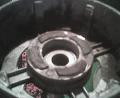 Birtokomban van egy Hajdu 407.42-es gyártmányú centrifuga, és gondba vagyok a szétszedésével. A centrifuga dobjának az alján van egy rögzítés a forgórész tengelyéhez. Ezt a rögzítést szeretném szétbontani, hogy a dobot ki lehessen emelni és a függesztő gumikat a helyükre lehessen rakni, illetve szigetelővel az esetleges réseket be lehessen tömíteni. A rögzítéshez viszont nem férek hozzá, mert valami műanyag dugó vagy nem tudom mi ez az utamat állja. Kérdés azokhoz szól, akik ismerik a Hajdu gépeket, vagy szedtek már szét ilyet, hogy a dobrögzítő a fényképen látható fehér műanyag alatt van? És ha igen akkor csavarhúzóval vagy valami mással le kéne feszítenem? Vagy hogyan távolítsam el azt a műanyagot? Esetleg menetes? Eddig erőhatásra nem nagyon válaszolt, összebarmolni feleslegesen meg nem akarom az alkatrészeket.