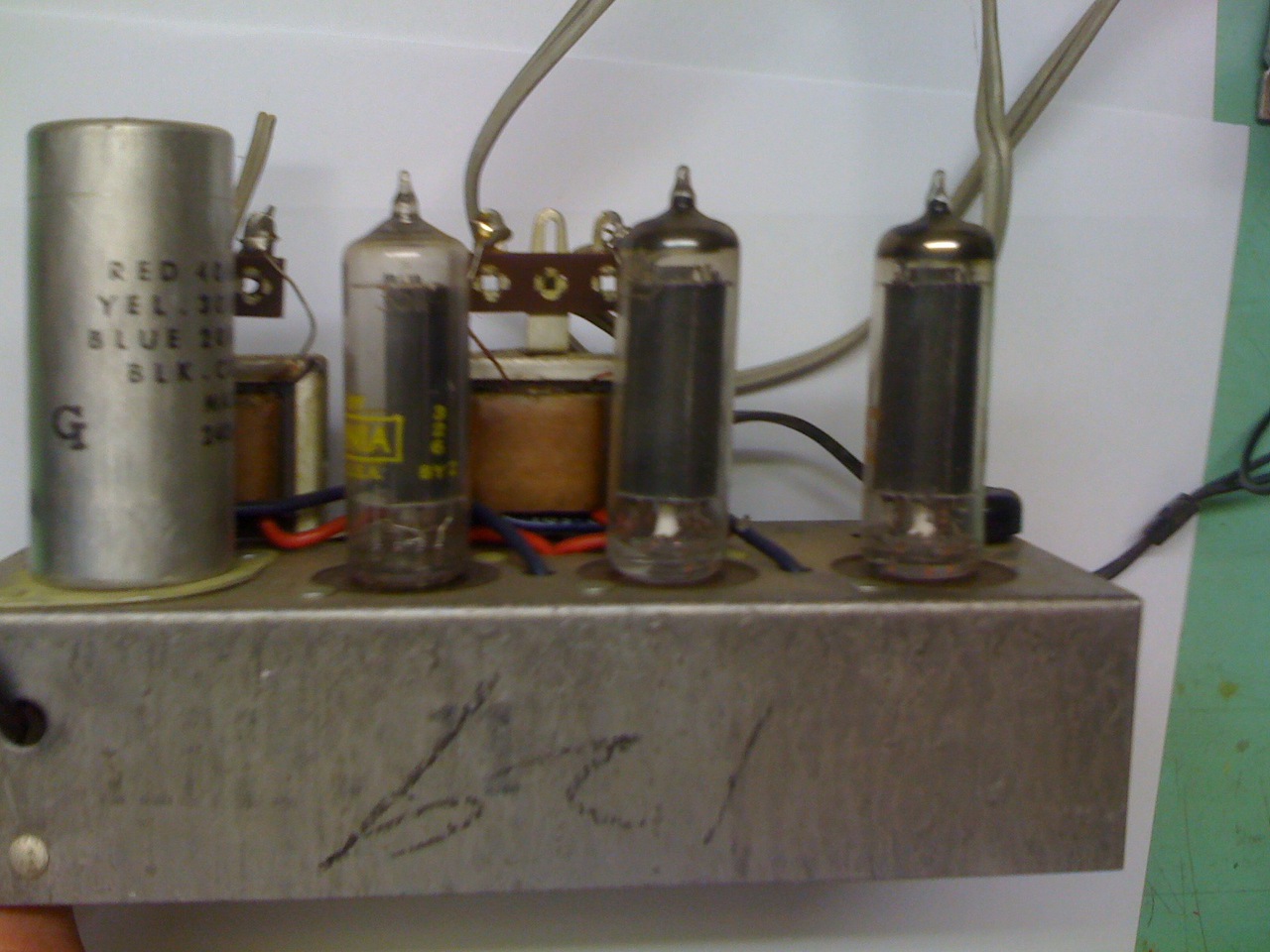 Szeretnék egy olyan kolegával beszélni itt Hajdú-Biharba aki az adatlapon és a grafikonon segít eligazodni. A tápegység rész kész és egy kapcsolót is betettem. A trafó 250-0-250V és mint mondtam az egyencső kapitulálása miatt diódával oldottam meg. Egyenirányítás után 340V-ot kaptam. A munkapont beállításokat szeretném majd megbeszélni. Jelenleg gránát üzemmódba van miután fullra szétszedtem.