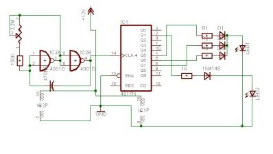 S a 4017-es kimenetén levő diódás és-kapuk valamint a ledek is jól vannak feltüntetve. :yes: Bár a RESET bemenetet vagy testre, vagy az egyik kimenetre kell kötni. ÚGY Idézet: NEM MARADHAT!!! :felkialtas: „LÓGVA” ... Csak nem tudom ez menyire illik Idézet: eredeti kérdéséhez!? „(#239257) kjéé” ... Ez inkább ide a: LED-ek sorban történő léptetése-be, vagy Villogó, LED-ekből (RC) autóra (FBI style) ( bár már ott is eléggé keveredik a téma... ) illet volna.