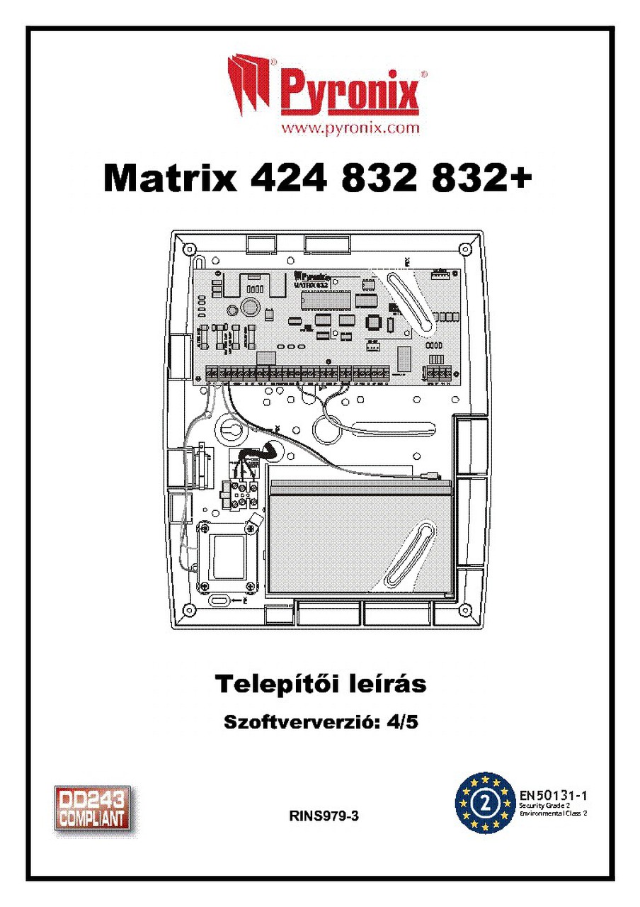 https://elektrotanya.com/pyronix_lcd_keypad_for_matrix_424,_832_832...d.html A címe: MATRIX 424 832 832+ Telepítői leírás A melléklet csak a címlapot tartalmazza. Egészben nem tudom mellékelni, itt csak 2MB engedélyezett. Ahogy írtam, e-mail csatolmányként tudom egészben elküldeni