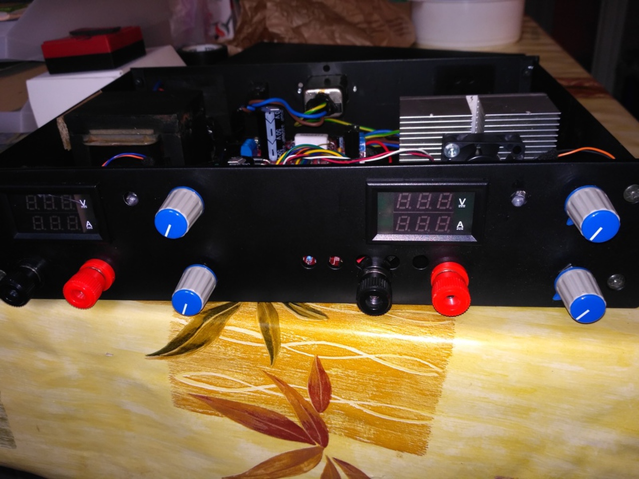 Szép munka, nagyon hasznos eszközt epítettél! 5V 3A kimenőt ne nagyon használj (se 3A-t rövidzárban), mert elpukkan a nagy tranzisztorod... 75-90W-ot kellene eldisszipálnia egymaga.