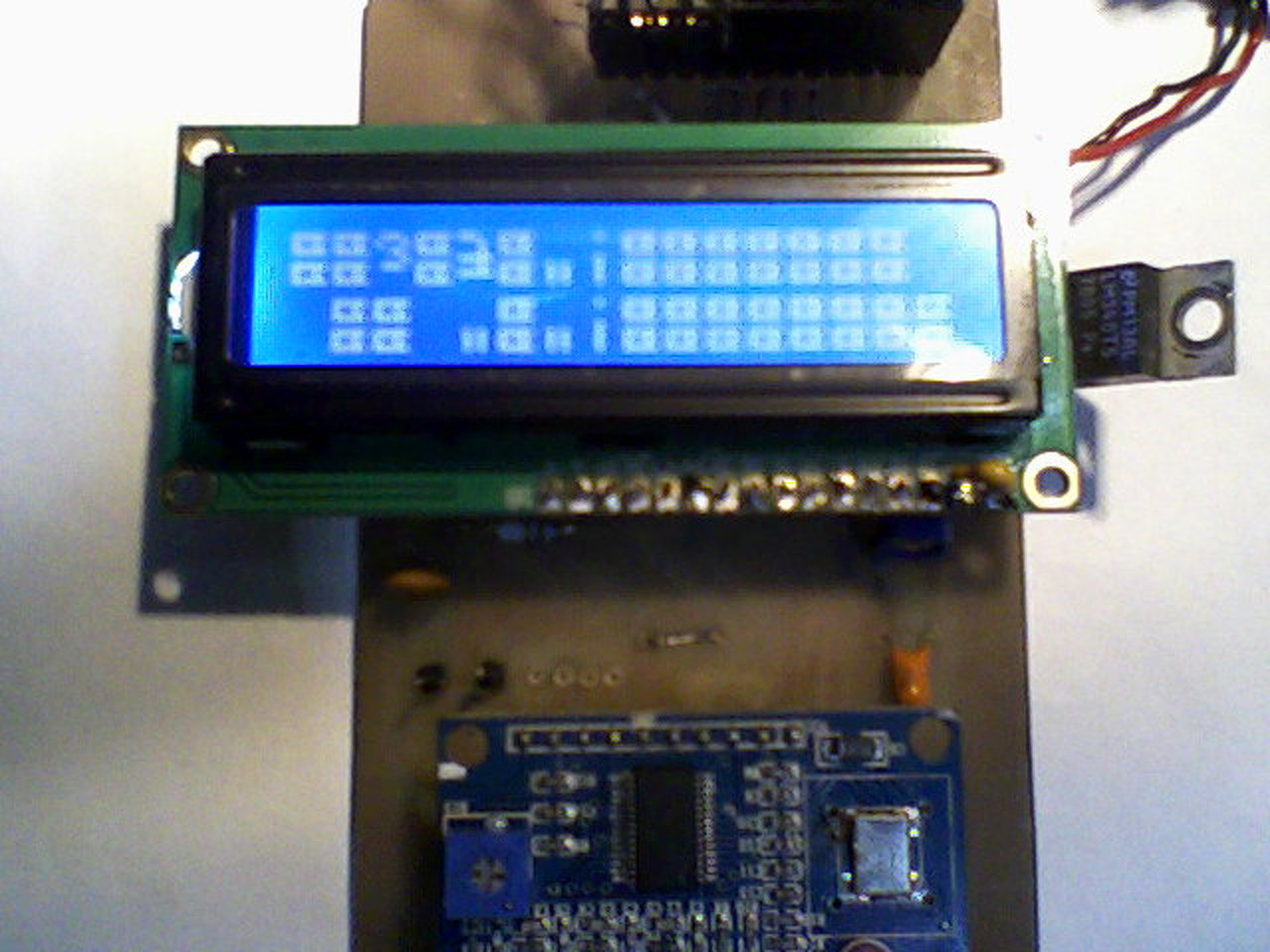 Úgy gondolom, hogy a 16f628a-nak van belső rc oszcillátora, és ez szabályozza a dds panelből kijövő frekit. Az általam látott működő példánynál a dds panel nélkül is helyes volt a kiírás a bejelentkezési képen. Felteszem a közismert kapcs. rajzot is, a megértés végett, az eltérés annyi, hogy a dds panel is 5V-ról megy.