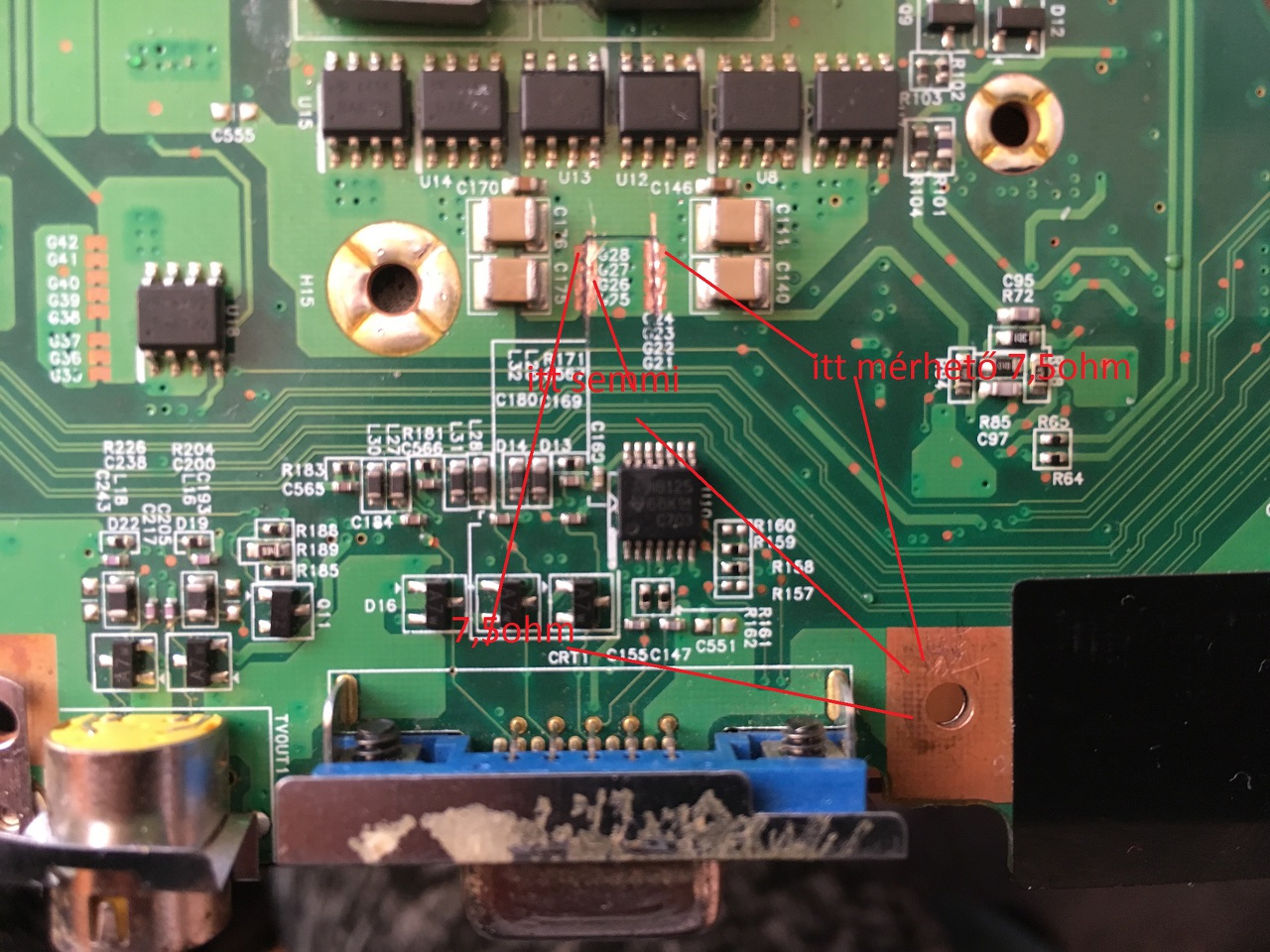 A c175-öt kivettem. Rámértem103,3ohm. Test meg ahol szétválasztottan ami Az U12 és az U13-ra megy most már csak felvilan.