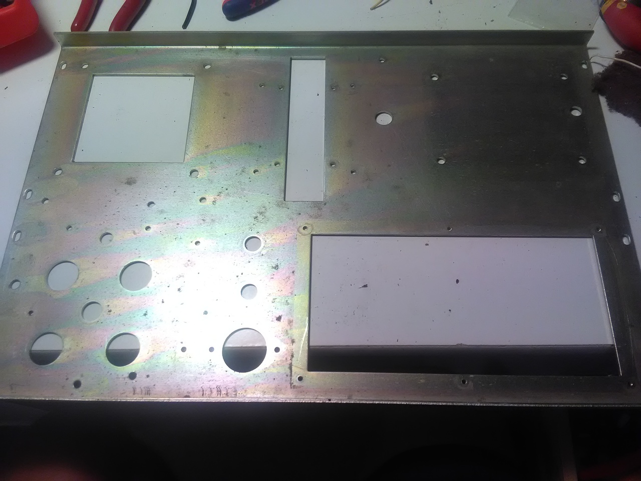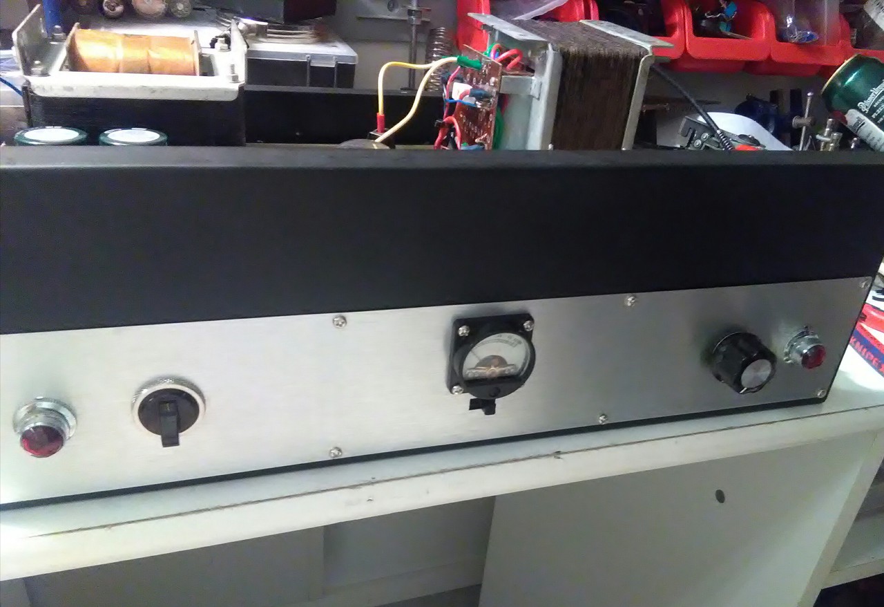 Az egyik elkészült. A csöveim ebben is ugyan azt mutatják. A hálózati trafó kivételével minden új. A főkapcsoló hátra került, az eredeti kapcsolóval az anód kapcsolható. Az előlapon nem lesznek feliratok. Hátul az eredetit használtam fel.