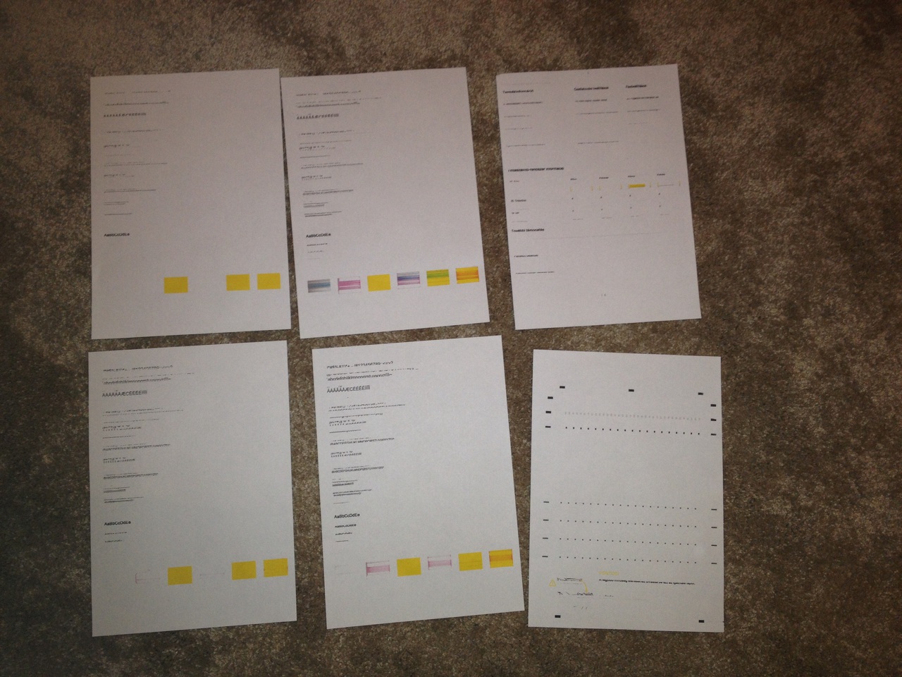 Sziasztok!Hozzám került egy HP OFFICEJET 4620 típusú szkenneres nyomtató.Minden jó rajta egy dolgot kivéve a nyomtatást.A mellèkelt képen látható hogyan nyomtat(gyakorlatilag sehogy) erősen csíkoz illetve sok szín hiányzik.elvileg az összes patron tele van.Mi lehet a hiba mit tudok vele tenni?Előre is köszönöm!