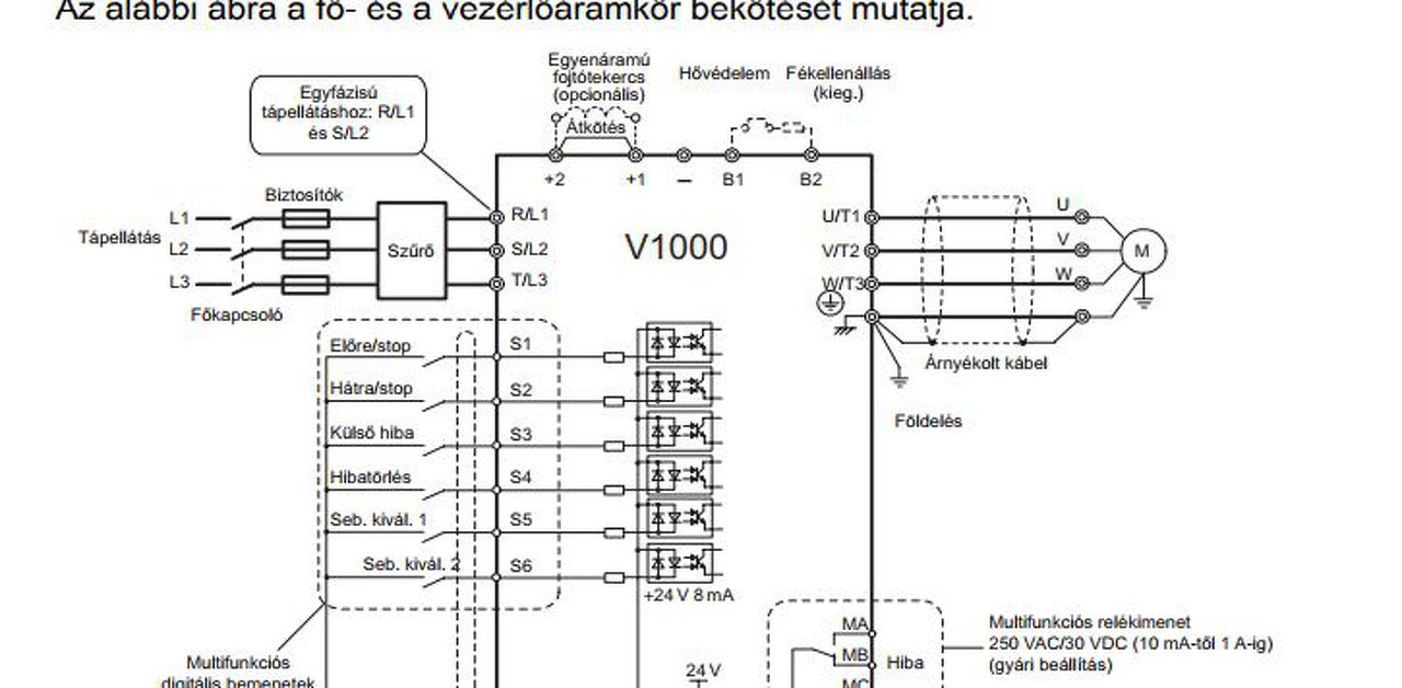 Az árnyékolt motorkábel árnyékolását mindkét végén a testre kell kötni.