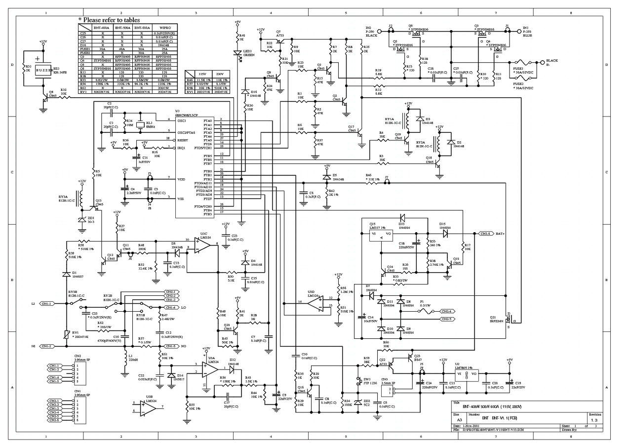 Hát igen, az biztos, hogy rajzot nem találtam erről a készülékről, sem pedig service manualt. Az lehet egy megoldás, hogy visszarajzolom, de most nem sok időm van erre. Viszont javítgatom ezt a készüléket, de nem találom benne a hibás alkatrészt. Egy olyan hibája van, hogy ha rajta vannak az akkuk, akkor amikor kikapcsolom a bemenetén a bejövő 230V-ot, akkor átvált akkus üzemre, szépen megy az akkukról, de vissza már nem vált a hálózati üzemre, hanem kivágja a biztosítékot. Utána ha újra bekapcsolom, akkor újra elindul az inverter rész, de az akkus üzem/hálózati üzem átváltást nem csinálja. Biztos, hogy az inverter panelon van a hiba, mert a másik ugyanilyen inverter paneljával meg rendben működik. 3db meghajtó IC, IR2110-es szállt el, az a része, amelyik meghajtja a végtranyókat. A többi IC a méréseim szerint jó volt, de a biztonság kedvéért kicseréltem azokat is, mert nem akartam, hogy megint eldurranjon amiatt, hogy esetleg nem vettem észre valamit. Úgy néz ki az inverter része elindult, stabilan megvan a kimeneten a 230V, bár szkóppal még nem mértem meg a jelalakot. Tehát az összes IC-t kicseréltem benne, a két stab IC-t, meg két kis FET-et is. A tranyók jók, ellenállások is jók, 1-et találtam ami szakadt volt, de az csak a venti áramköréhez volt, szóval ehhez a hibához nincs köze. A diódákat is végigmértem, azok is jók. Már csak a fóliakondik vannak. Nem tudom, hogy azok közül melyik lehet rossz, mert van vagy 60-70db belőlük a panelon. Kicsit már tanácstalan vagyok, mert minden jó a panelon, de az akkus üzemről a hálózati üzemre való átváltást nem csinálja, hanem kivágja a biztit.