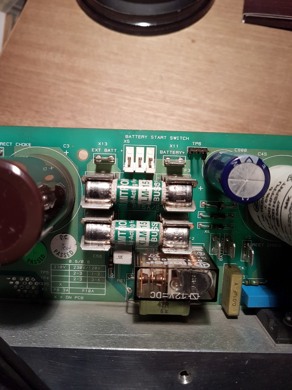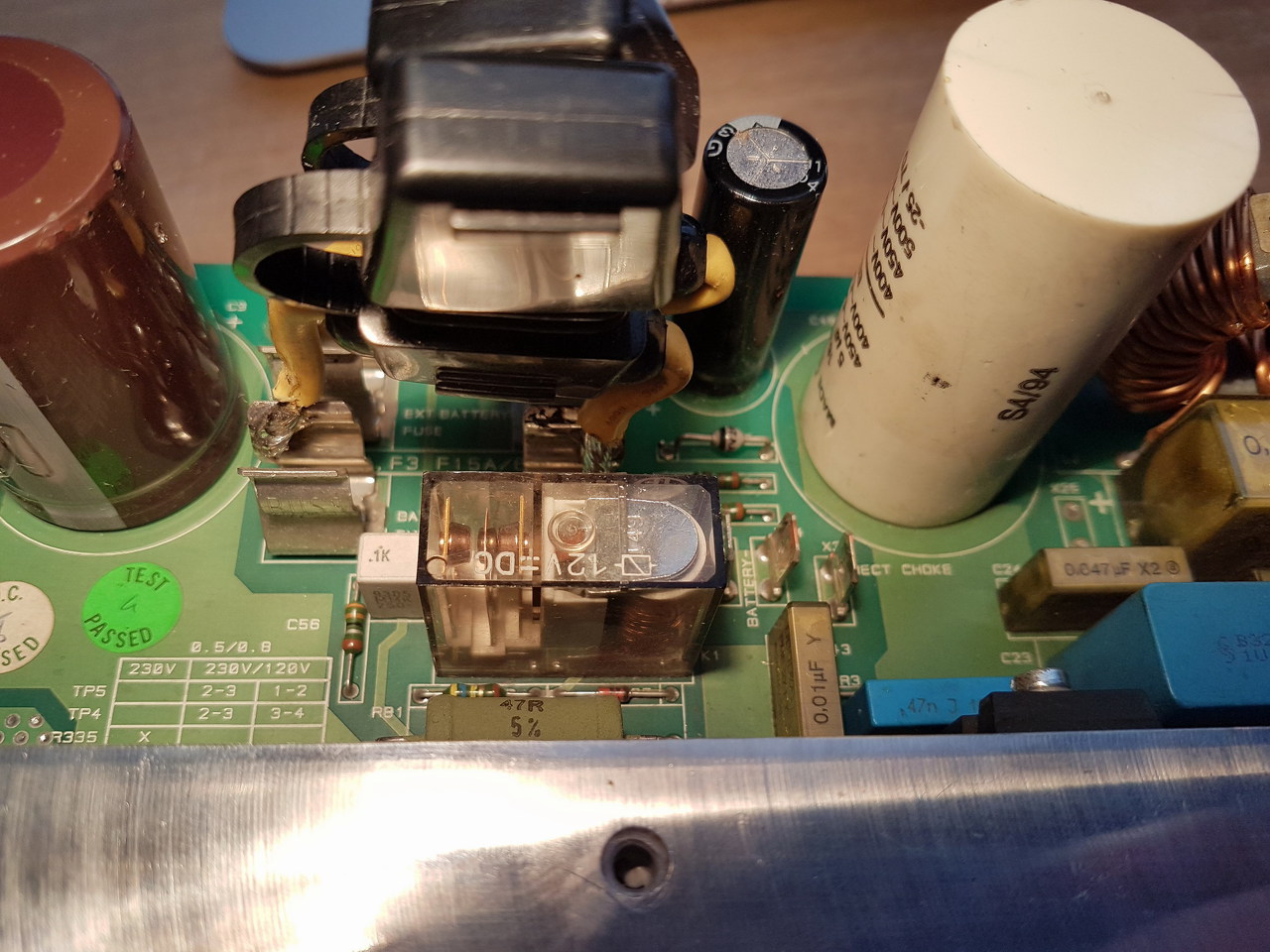 A panelon csak egyetlen relé van, de az mind az akkus üzemben, mind a hálózati üzemben behúzva marad, mindkét inverter panelon. Két keszülék van az egyikben rendben működik az inverter panel. Ez egy online színuszos készülék egyébként. Úgy indult a problemája, hogy amikor a terhelés rajta volt, és az egyik visszaváltás során (akkus üzemről hálózati üzemre) felrobbant a készülékben a 7815-ös stab IC. Ez sokmindennel kapcsolatban van és magával vitte a 3 db IR2110-es meghajtót is, meg a venti körében egy TIP47? Tranyó emitter ellenállását és a biztit is. A végtranyók is jók nem zárlatosak. Elkókat is cseréltem benne, így azok is frissek. A többi IC-t is kicseréltem, mert egy ilyen táprobbanás után nem voltam benne biztos, hogy azok nem kaptak-e pofont. A diófákat kétszer is átmértem, és összehasonlítottam a másik panellal is, szinte mV-ra ugyanazt mutatja a Fluke multiméterem diódavizsgálója. Minden alkatrészt összehasonlító méréssel mértem meg a másik jó panelhoz képest, már csak a fólia kondik vannak amiket még nem vizsgáltam. A nagyfesz kondik nekem is gyanúsak, mert kicsit repedezettnek tűnik a burkolata. Alig látszik csak lámpafénynél, ha úgy fordítom a panelt és megcsillan a fény rajta. Ezek egyébként RIFA kondik, jó minőségűek. Nemsoká teszek fel képet a panelról.