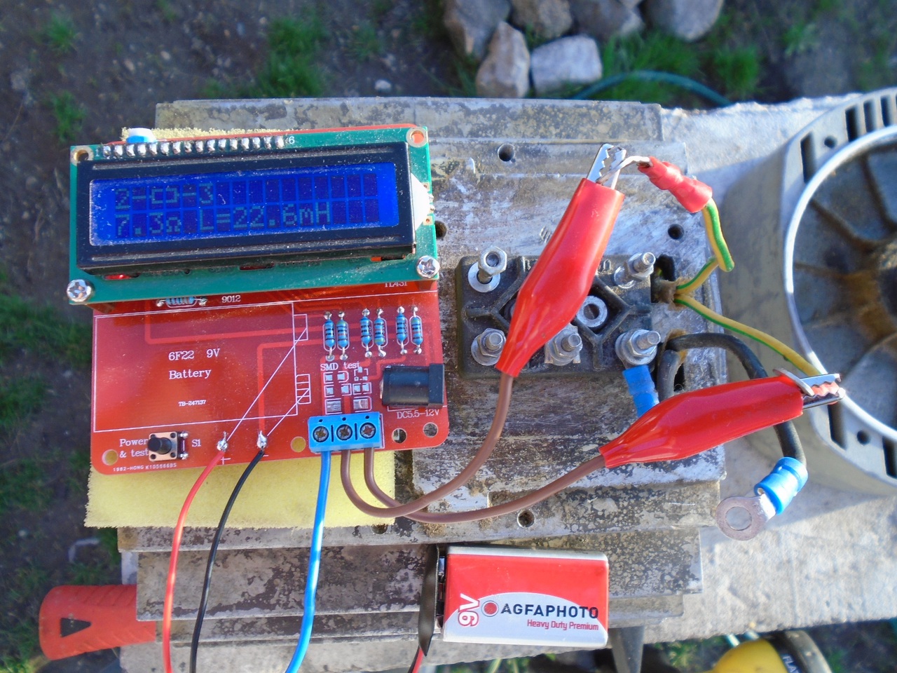 Nem így szokták megnézni a menetzárlatot. Szétszedett motor tekercsére AC-t kapcsolnak, inkább 12 V-ot, mint 24-et. Vékony acélszalaggal, pl. fémcenti darabjával végigtapogatják az állórész belsejét. Ha valahol halk zizegés helyett hangosan vergődik, ott van a menetzárlat. Na meg ugyanannak a tekercsnek a másik felén.