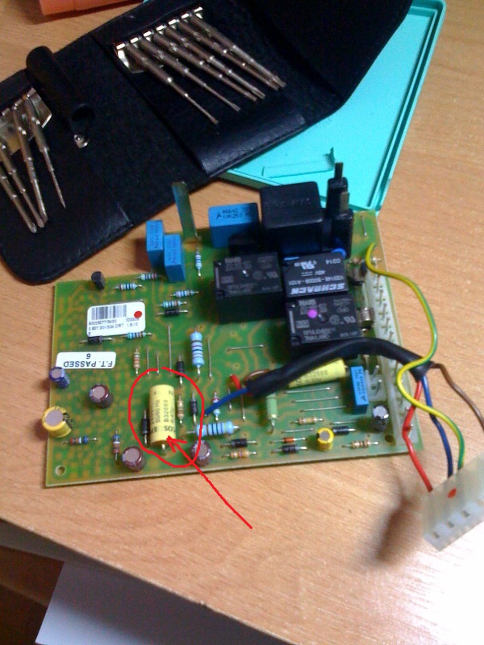 Igazság az hogy nem nagyon mertem turkálni a panelon,ha félresikerül valami akkor fázunk.Nyáron bátrabb lettem volna de ahogy szokott lenni,télen egy hét használat után jött a hiba.Nem gondoltam volna hogy egy fólia kondi lesz a hiba.Találtam egy kondit a panelon 63v 10uf aminek kiesett az egyik lába kiforrasztáskor, akkor azt hittem az lesz a baj.