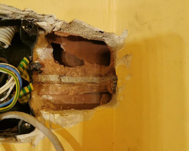 Veszel egy 80x80x50-es szerelődobozt, azt bármilyen fenn említett módon belegyógyítod a falba és abba kétkomponensű ragasztóval olyan precízen ragasztod be, ahogy akarod.