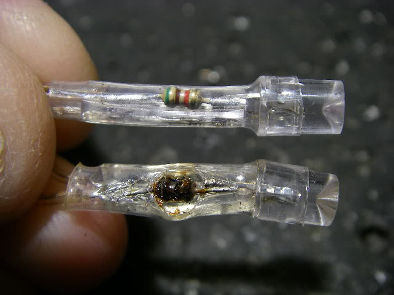 Szóval ha a kínaiak nem spóroltak volna 10 forintos ellenállásokon (ami nekik 0,1Ft-ba kerülne), akkor az érintésvédelmi problémákat leszámítva viszonylag használható lenne a füzér, így viszont egy pár óra alatt elolvadó, kigyulladó, kilógó vezetős, életveszélyes hulladék lesz belőle. Egy fém vázas műfenyőn egy ellenállás miatt kiégő zsugorcső azt is eredményezheti, hogy 1 óra üzemeltetés után az egész fa fázisra kerül... Ami eredetileg nem villog, és kínai, ott legalább kapacitív táp van, így legalább nem melegszik. Viszont a szigetelése annak is silány.