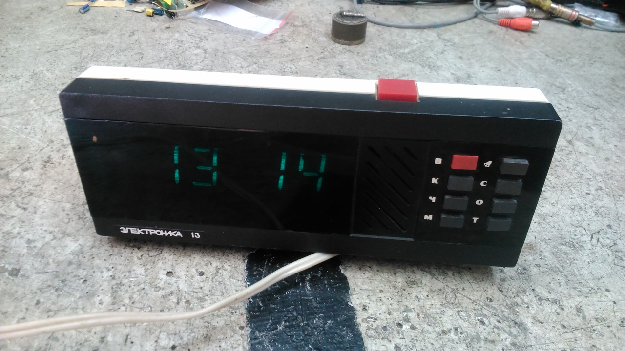 Tapasztalt valaki olyat, hogy Elektronyika-4 típusú (fadobozos, ébresztős, elem nélküli) óra működik, ugyan, de lassú a multiplexálása? Vagyis kb. másodpercenként ugrik egy-egy digittel balra, kb. 5sec, míg egyesével végigmászik a digiteken. Fénye rendben van, értelem szerűen egy digit világít csak egyszerre. Gombokra nem reagál. Gombok nem koszosak, nem vezetnek át. Az egy szem tápszűrőt cseréltem, helyzet nem változott. Arra gondoltam, a kvarc hibás, alacsony frekin rezeg. De nincs rajra érték, nem tudom, mi kellene bele. Az IC-n sajnos nincs felirat. Az óra így néz ki: Bővebben: Link Szerintetek mi okozhat ilyet?