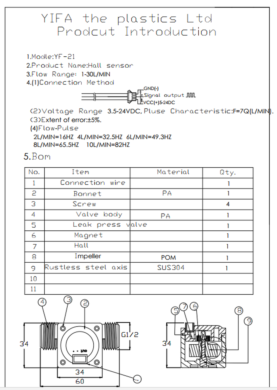 "YF-S201 Hall hatású vízáramlásmérő / érzékelő