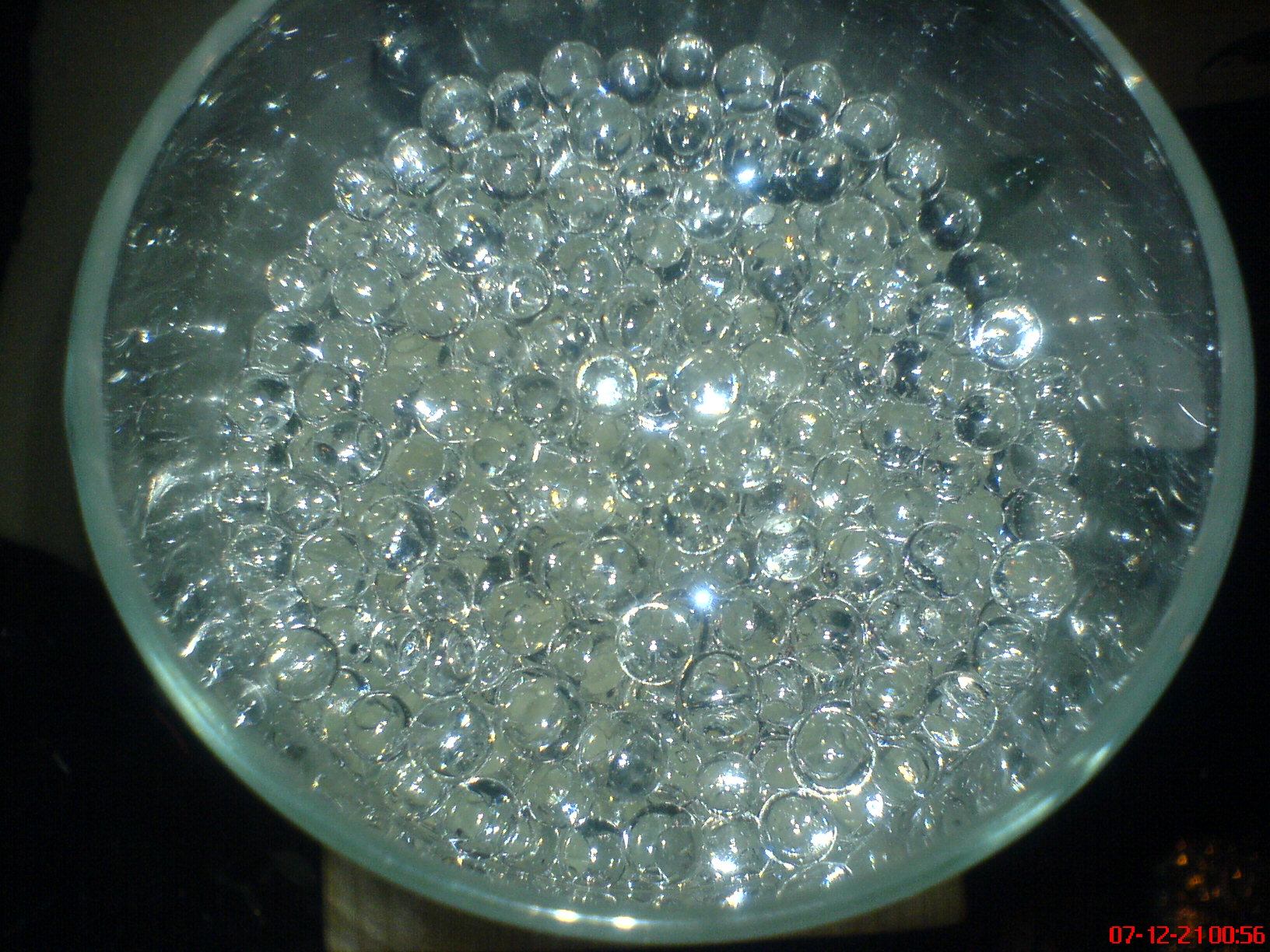 A kapcsolás alapja a BSS-en megtalálható "színkeverő LED-ekkel" nevű kapcsolás. Hál' istennek panelt nem kellett terveznem hozzá, mert a NYÁK-terv könnyen beszerezhető volt a tanár-diák kapcsolat révén A "dobozolást" egyik asztalos barátom végezte. Az üveghengert egy porcelánboltban szereztem be. Az üvegbe belekerült "gyöngyöket"pedig egy dekor boltban kaptam potom 400 HUF-ért! Ezt fel kell önteni vízzel és majd' egy nap után az apró gombostű-fej nagyságú piszokból egy borsószem nagyságú "gyöngy" lesz. A kész áramkört elláttam egy alkonykapcsolóval is. Amik képek készültek, azon még sajnos nem "oldódott" fel teljesen a gyöngy, mert az alja még homályos képet ad!