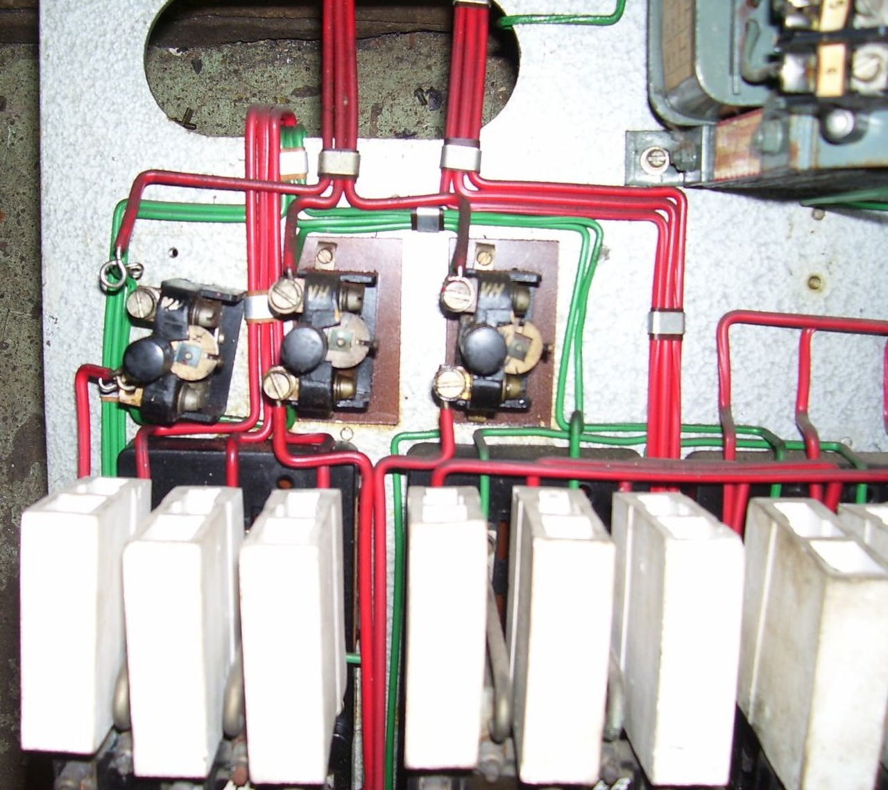 Talán meglátni, a mágneskapcsolók erőátviteli kötéseinél hengeres anyák felül csavarhúzónak horonnyal.
