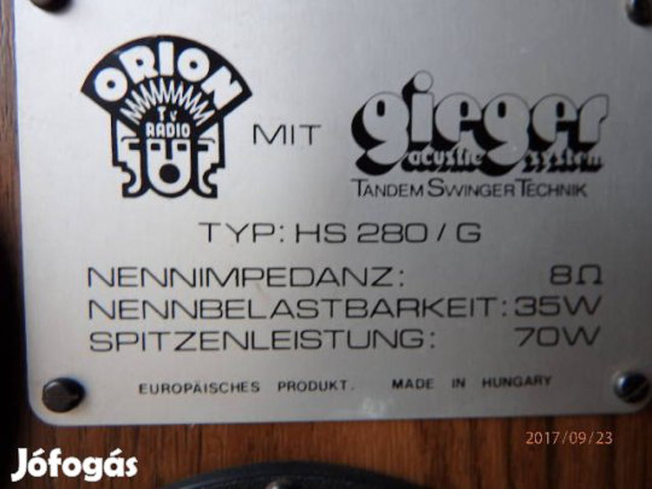 . Az ORION HS280 nullszériája nem ment ki a kereskedelembe, pár HS200-280 hibrid korlátozott számban kapható volt. A nullszéria elnevezés gyári próbálkozásokat takar általában a gyártóknál. Kapicse??A HS280 első szériája fehér közép dómokkal szerelten jött ki a gyárból. Ez előtt van a "rács", ami egy akusztikai szűrő, pár száz éve már feltalálták. Ez a középdóm volt a "nagytoronyba" is, ami nem egy templom, hanem a HS500. Ritka s..r hangjuk volt. Később az ORION (gyár) jobb, kék színű, más anyagból készült közép dómokra cserélte le a HS280/500 hangszórókészletét, és ezek a dobozok már egész jól szóltak. Legalábbis a 80-as évek magyar viszonyihoz képest..Aztán jöttek a HS280/500 olcsósított változatai különböző elnevezéssel, egyre silányabb minőséggel. Ennyi.