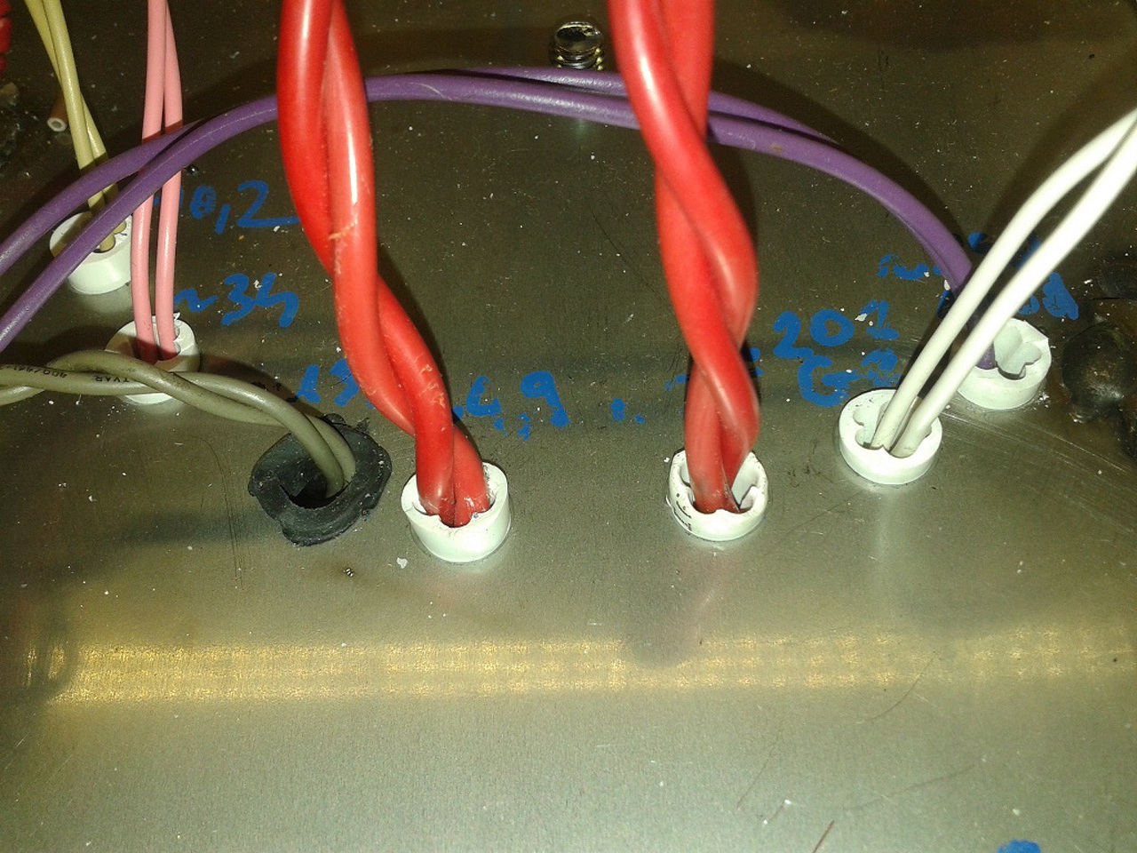 igyekszem mindenki tanácsát megfogadni,hiszen ezért is jöttem hozzátok! A fűtéseket újrakábeleztem,az irányelveket figyelembevéve. A GU50 fűtés kábelei vékonyabbak lettek,máshogy vezettem el őket. Kaptak biztosítékot is. A kábelátvezetőknél 1 db hasonló méretű gumidugóm volt,amit felhasználtam. Ezután improvizálnom kellett,de szerintem elég jó lett,végleges megoldásnak gondolnál. Jó szoros. Felesleges cső kivéve,bekapcsológombot tervezek odatenni. (Hátul lesz egy hálózati kapcsoló,ami átbillentve a fűtések üzemelnek,anódfeszültség viszont nem lesz. Az első kapcsoló pedig az anódfeszültségért fog felelni. ) A Wago-k kidobva. A fűtések fixen beforrasztva,a többi szerelés pedig 2 db kicsi kapocslécen lesz megvalósítva,terveim szerint. A földeléssel a tervem : A sasszit a trafórögzítő M8 csavarnál hálózati védőföldre fogom kötni. Ezen kívül a táp-GND a kérdés : Ki kellene alakítani egy csillagpontot valahol a sasszi közepén,szigetelve a fém részektől? Ide pedig bekötni az összes egyenfeszültség GND-t minél rövidebb kábelekkel?