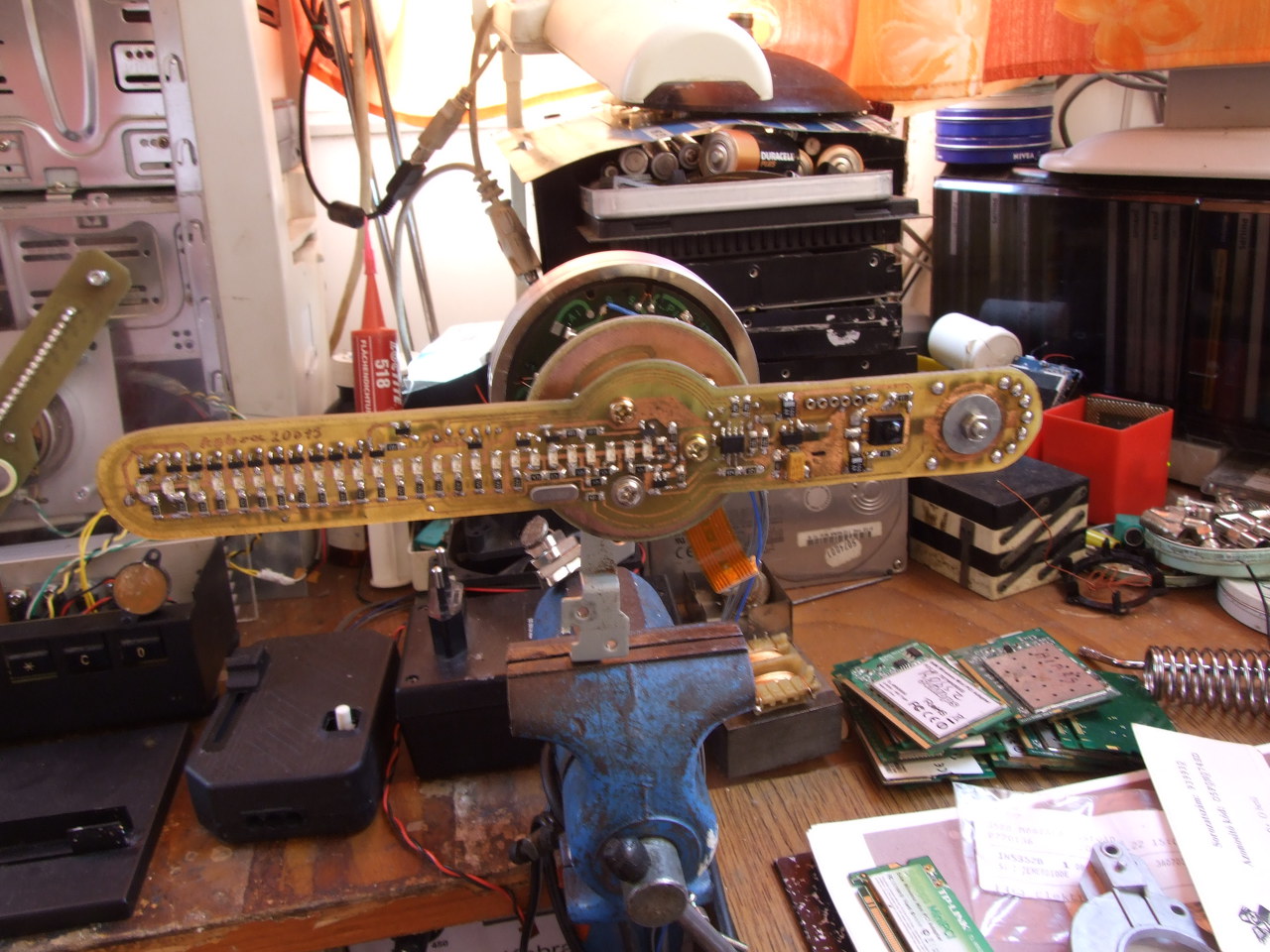 A rotor rajzban maradt egy kis hiba. A PIC 18-as lábán lévő ellenállás átkerül a külső kör tranzisztorának a bázisába. Itt az új rajz. A led áramkorlát ellenállások nálad változhatnak !!! (led függő) Kiegészítésként csináltam egy kis áramkört, ami minden órában egy percre bekapcsolja az órát. Ez egy kis dobozkában van, egy fix helyen ahonnan rálát az órára. Tulajdonképpen egy időzített távvezérlő, (a 16f84) ami csak a bázist kapcsolgatja ki-be. Nekem így működik, óránként egy percre megmutatja magát az óra. Ha érdekel küldöm.