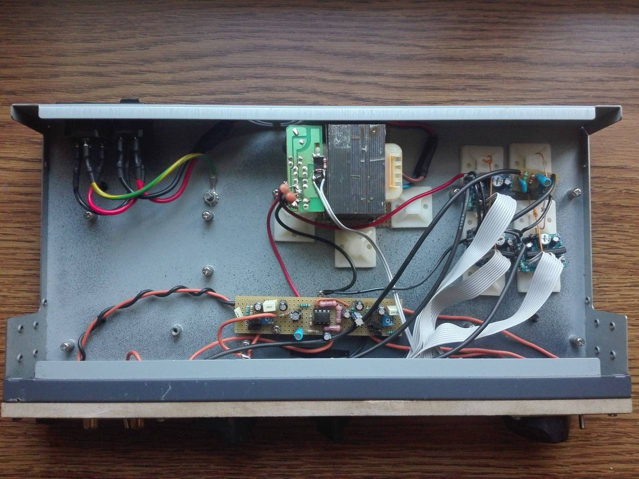 Végre bedobozoltam az új leválasztó trafómat. 800VA leválasztó toroid + lágyindító + 240VA szabályozható toroid + V,A,W mérő. Videó működés közben: Trafo.mp4 Apróbb szépítgetések még kellenek hozzá (pl. tekerőgombra kupak), de már használható.