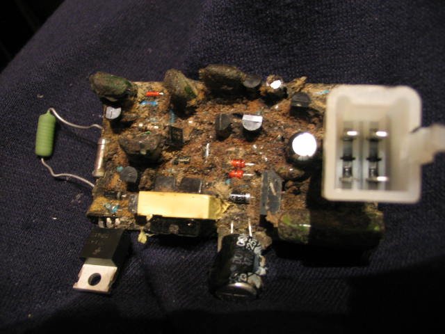 Egyébként melegitéssel tudtam idáig kibontani,tovább macerás a fekvö alkatrészek miatt, meg mintha kvarcszemcse is lenne benne. Azon gondolkodok hogy még némi melegités után megprobálom kiemelni a trafot, a csatit, meg a szappanformáju kondikat, és bedobom acetonba, hátha az tovább bontja.