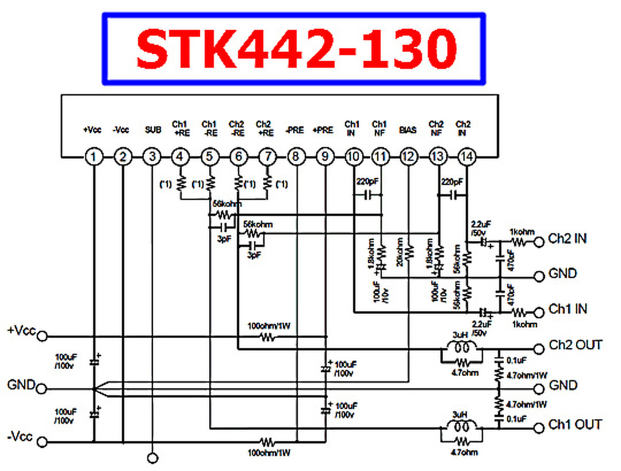Hasonló STK-végfokokban az összes kis kerámia kondenzátort, valamint az ELKO-kat is cserélni kell, ha új IC-kerül beépítésre. Lehet, hogy ez furcsán hangzik, de tapasztalatból írom és legalább 500V-os legyen a kerámia kondenzátor, 50, vagy 63V-os nem jó! Érdemes az Új IC beforrasztása előtt kimérni minden ellenállást, mert a visszacsatolás hiánya is tönkremenetelhez vezethet. Üdv!