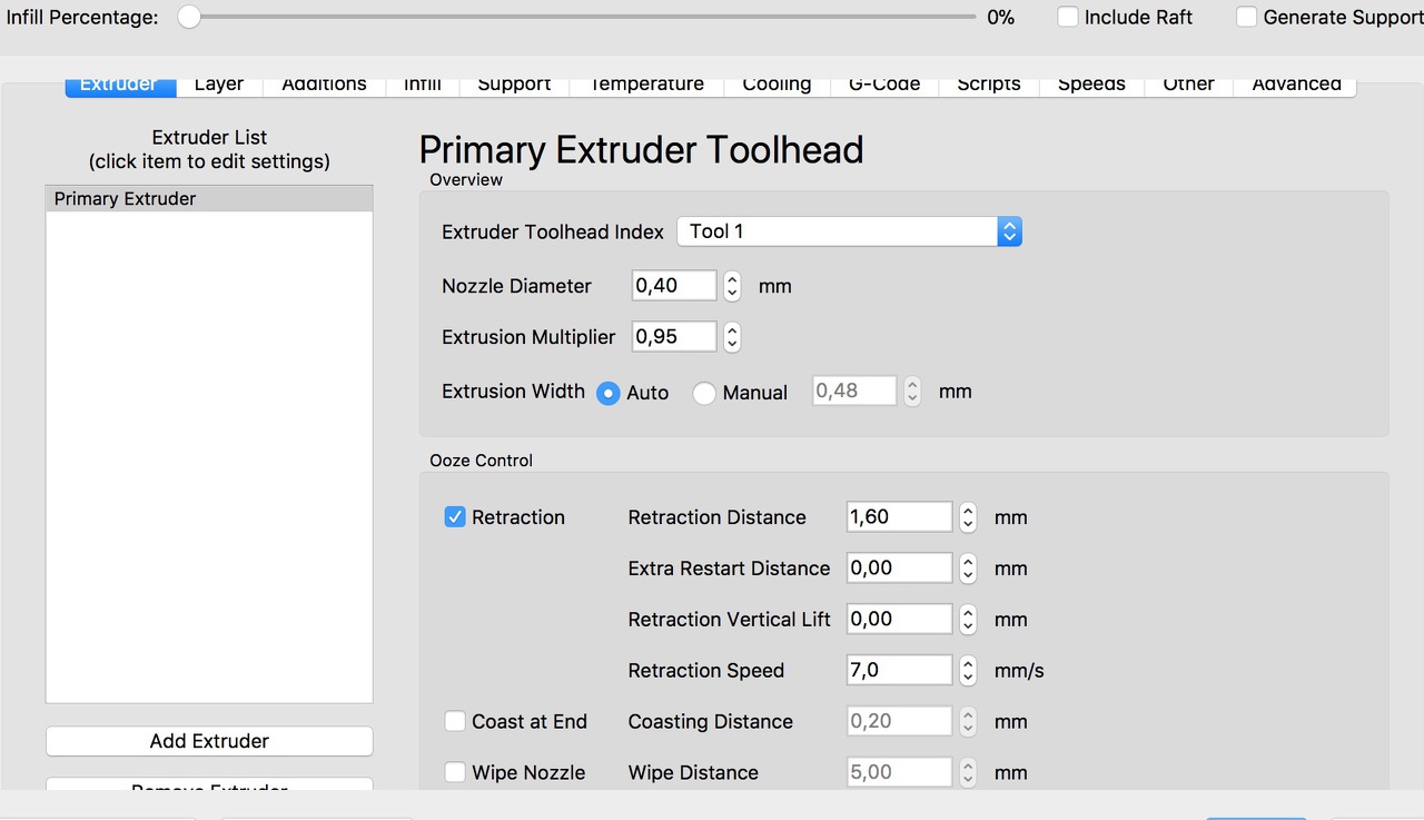 Na hát szerintem ez nem releváns... A nozzle diameter 4,0mm, Extrusion multiplier 1,00, az Extrusion Witdh pedig manuálisan 0,4mm volt. Így tolómérővel a falvastagság kb 0,7mm. Itt valami nem stimmel.