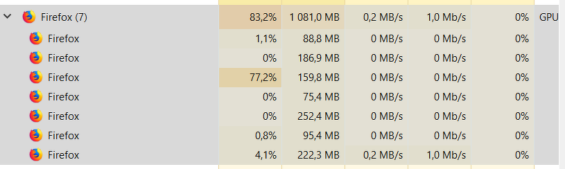 Szerk: Az lemaradt, hogy onnan tudom, hogy az Adblock pörgeti ennyire a procit, hogy ha bezárom azt a folyamatot a firefoxon belül a feladatkezelőben, ami mellett látom a magas CPU használatot, akkor semmilyen reklámot nem fog meg, és ha a beállításaiba akarok lépni, nem reagál rá semmit.