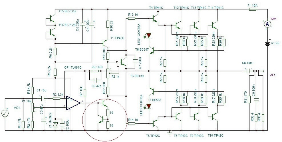 Idézet: „Egy kérdés számomra is nyitott maradt, a negatív félperiódus T7 áramkorlátozója hogyan viseli a T2 felől érkező, akár 1,5 A-es áramot?” Itt az R14 10 Ohm-ra gondolsz? A T2 anno amikor mértem valósan ott nem jött létre 1,5A-es áram ha teljesen kihajtottam akkor sem. Amint lesz időm, kipróbálom. Ez most csak elméleti próba lenne. Kíváncsi voltam, ha belenyúlok, jobb lesz e, vagy nem?