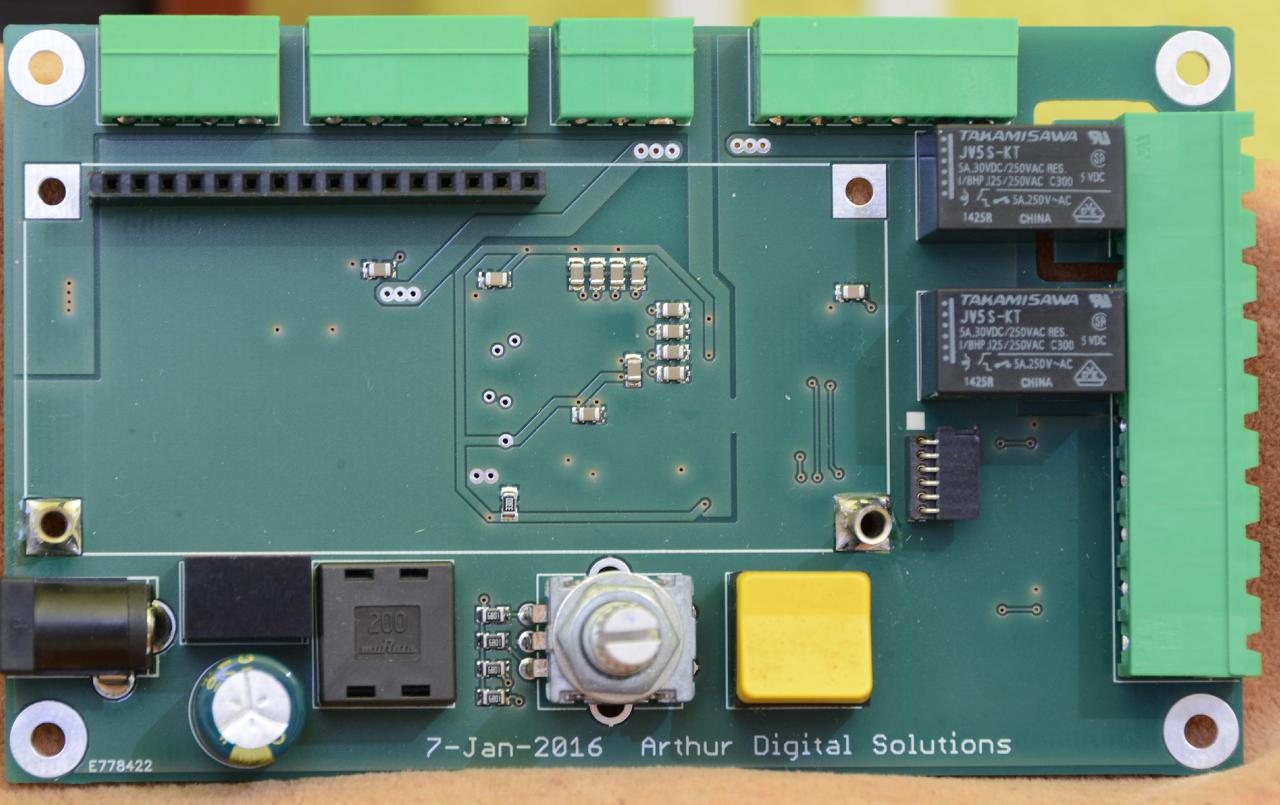 Itt van ket kep egy telifoldes panelrol. A nyolc A/D bemenet kozvetlenul az IC alatt van hidegitve 100n kondikkal, ahogy a uC taplabai is. A telfold ugy van kialakitva, hogy az analog resz foldjen ne folyjon keresztul mas egysegek arama. Ezt ugy lehet elerni, hogy megfekelo helyen meg kell szakitani a telifoldet.