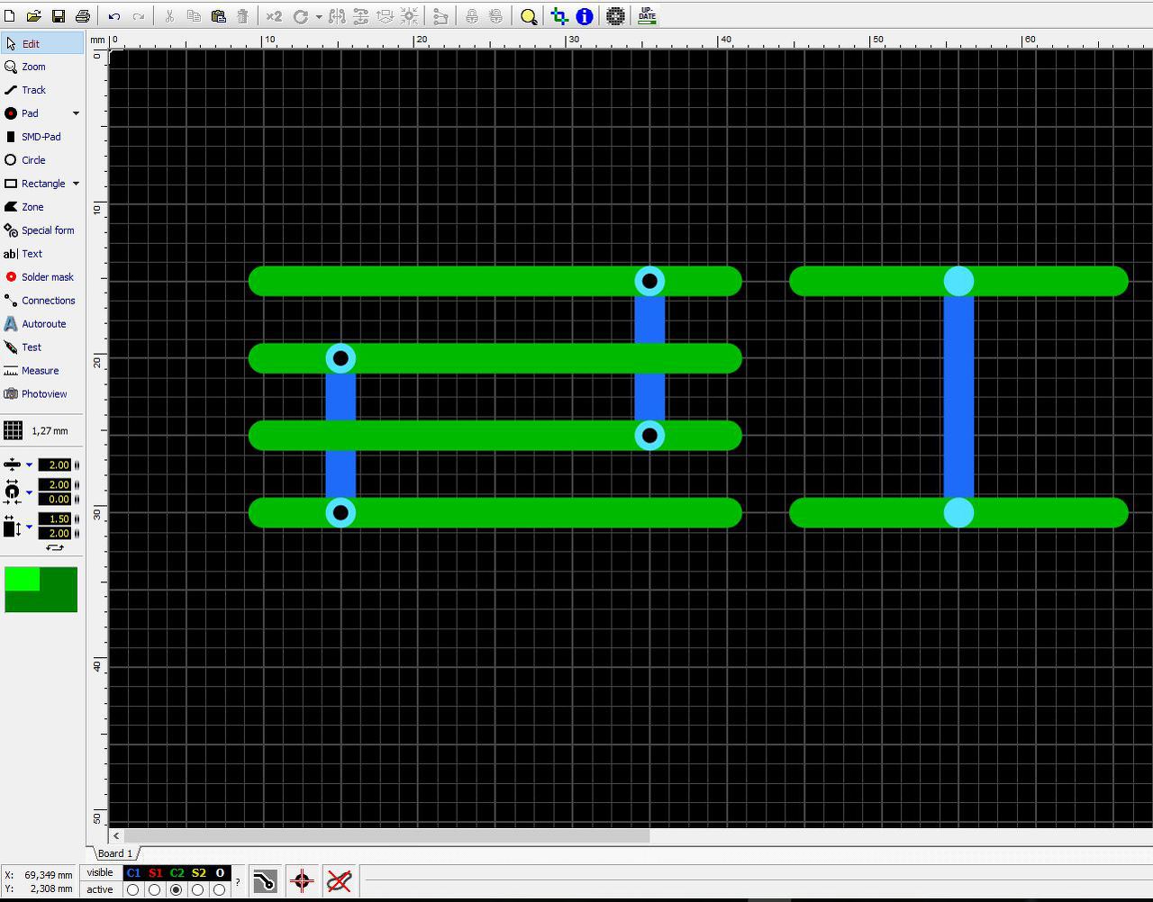 Akkor itt szerintem hiba van a programban, mert a teszt funkció a furat nélküli padnél is összeköttetést jelez a két réteg között.