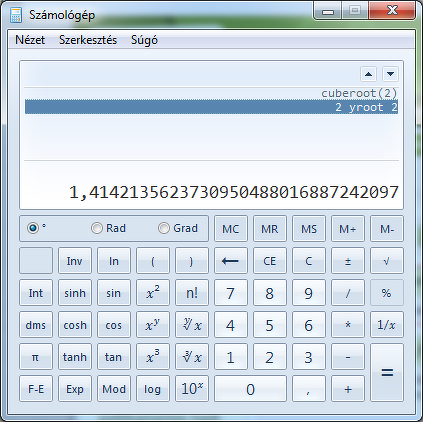 Bocs, rossz gombot nyomtam. Gyök2 kell, véletlen gyök3 -at nyomtam (win7-en úgylátszik nincs gyök2 gomb, csak gyök3) bocs.