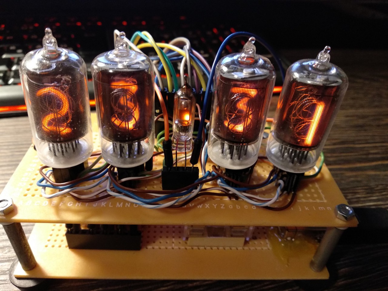 Nixie órát csináltam. A kivitelezés egyenlőre förtelmes, inkább fejlesztőeszközként/prototípusként kell tekinteni a kütyüre, mint igazi 24/7-es óraként. Nyákot már terveztem hozzá, ha beválik a proto, akkor gyártatok is. A nagyfesz táp a klasszikus overkill táp, ez az egyetlen dolog amit nem én terveztem. Az anódok TLP627-es optókon keresztül multiplexelve vannak, a szegmenseket kiválasztani egy 74141-en keresztül lehet. Az óra érdekességét az adja, hogy egy ESP8266 vezérli, ami egy REST API-n keresztül elérhető webszervert futtat, így belső hálózatról gyakorlatilag bármivel lehet vezérelni. Készül hozzá android platformra "távirányító" app, ami nagyban megkönnyíti a funkciók elérését. A folyamatos internetelérés miatt az óra pár másodpercenként lekéri az időt, így rendkívül pontos. Van buzzer, ébresztés, rgb háttérvilágítás stb. Tervezek egy nonmultiplex verziót is, úgy még a csövek fényerejét is tudnám szabályozni, mert tesztjeim alapján jól reagálnak a PWM alapú szabályozásra, de multiplex módban sajnos interferál a PWM a multiplexeléssel, és mindenféle problémák jönnek elő, szellemképes, villog stb.