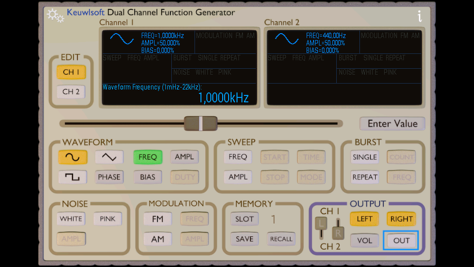 Meg akartam érteni a katódfeszültség lényegét ezért beáldoztam egy pentódás csövet. Az itt leírt kísérletért lehet kapok majd. Na a katód ellenállás helyére egy 10-es potit raktam és elkezdtem tekerni. Jelforrásnak a telómat használtam a képen látható beállításba. Az egészből csak a hangerő változást érzékeltem max hangerős bemeneti jellel. De hogy a lényeg ne maradjon ki: van ellenérv a fix ellenálás helyett potit berakni?