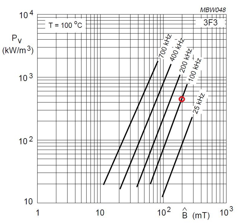 Mivel pont az előzőekben taglalt feltételek (B=200mT, 100Cfok, 100kHz) szerinti Pv nincs feltüntetve ezért a katalógusból számítva (a térfogatot már az előbb meghatároztuk): 3C90 ~12W 3C94 ~9,6W 3F3 ~11W Ezekből az adatokból nem látható annyira, hogy a 3F3 a többihez viszonyítva 300-400kHz teljesít igen jól. A hozzászólás módosítva: Feb 2, 2018