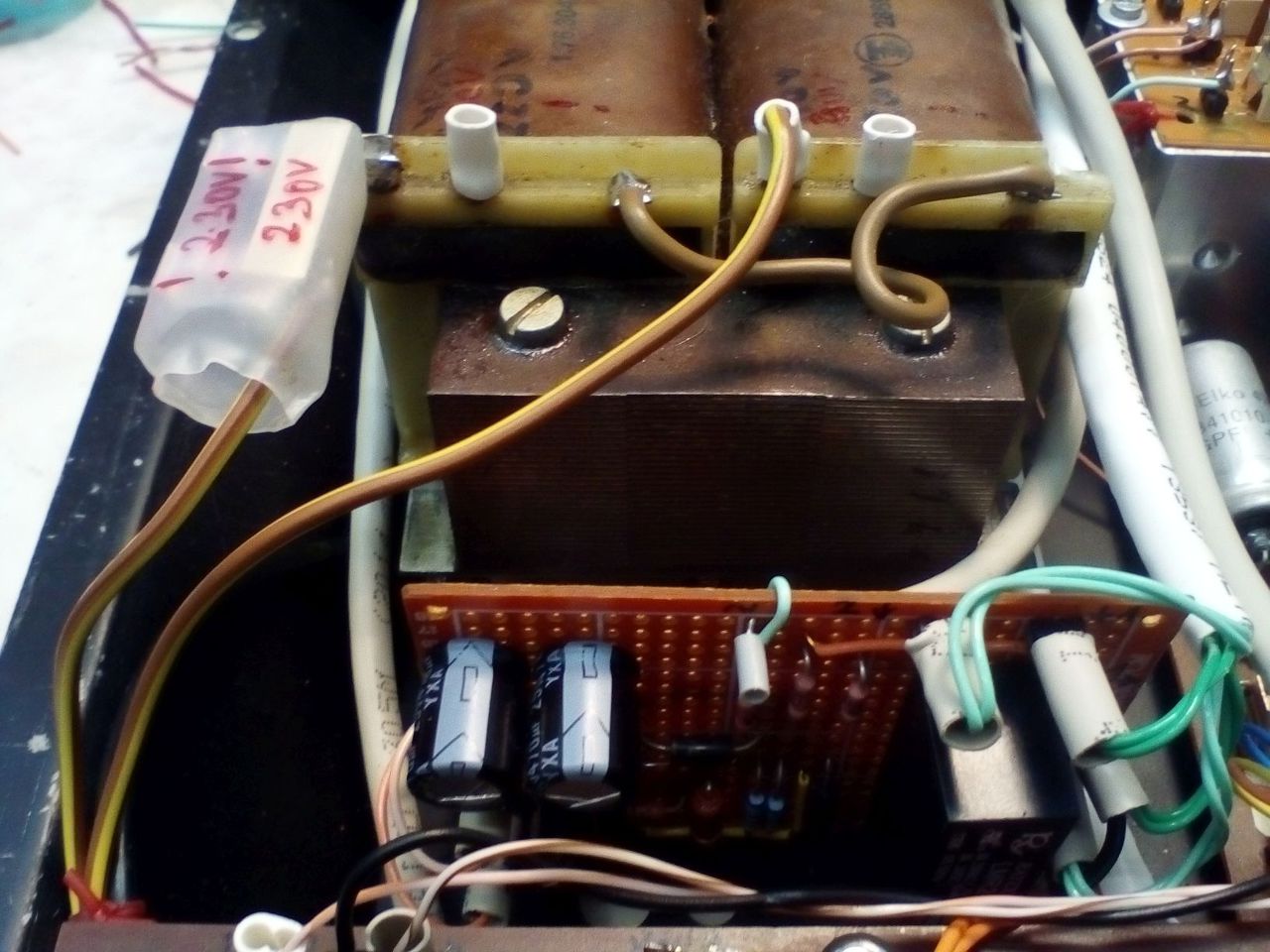 Főpróba még nem volt, de a feszültségértékekbe beleméregettem és kb. minden stimmel, nagy baj nem lehet... A TCA750-s tápegység panelen volt pár db 1N4148-s dióda, ami inkább 'drót' volt azokat cserélnem kellett. A uPC1237-s hangfal védőt is sikerült bepasszítanom, remélem így tényleg üzembiztosabb lesz a gépezet. A 230V-s részbe is beiktattam egy biztosítékot biztos, ami biztos... A bemeneti fokozatból kitermeltem a Phono-t és a Tape mintájára csináltam egy AUX bemenetet.