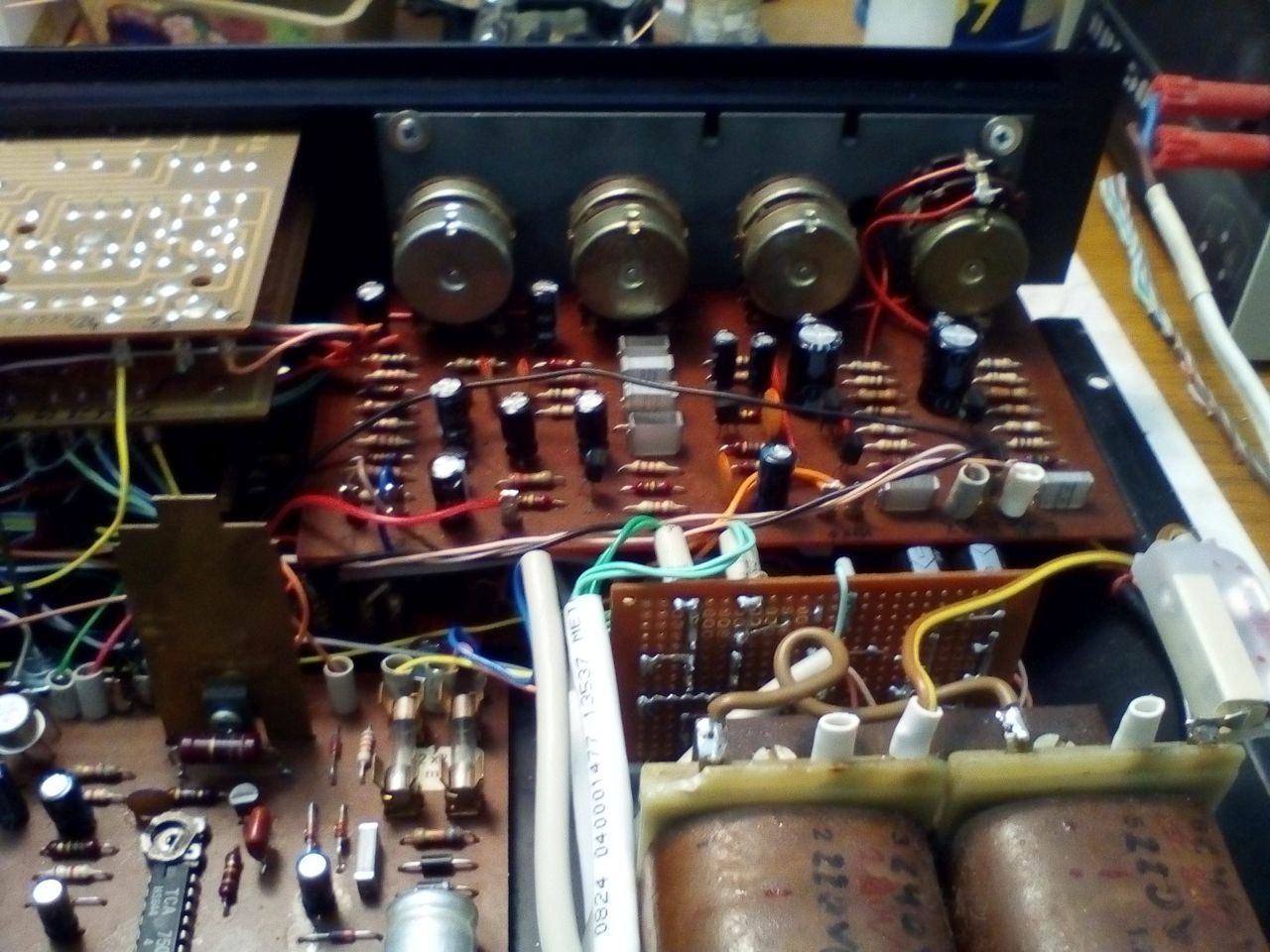 Gratulálok! Majdnem úgy néz ki, mint új korában. Azok a Din hüvelyek rajta már tényleg elég idejét múltak. Nekem a bemeneteken vannak Din-RCA átalakítóim, a fejhallgató kimenetet is kicseréltem 6,5 mm-es Jack hüvelyre, de van 6,5-ről 3,5-re is átalakítóm. Neked is most érdemes a nem megfelelő aljzatokat kitermelni, amíg ennyire szét van bontva.