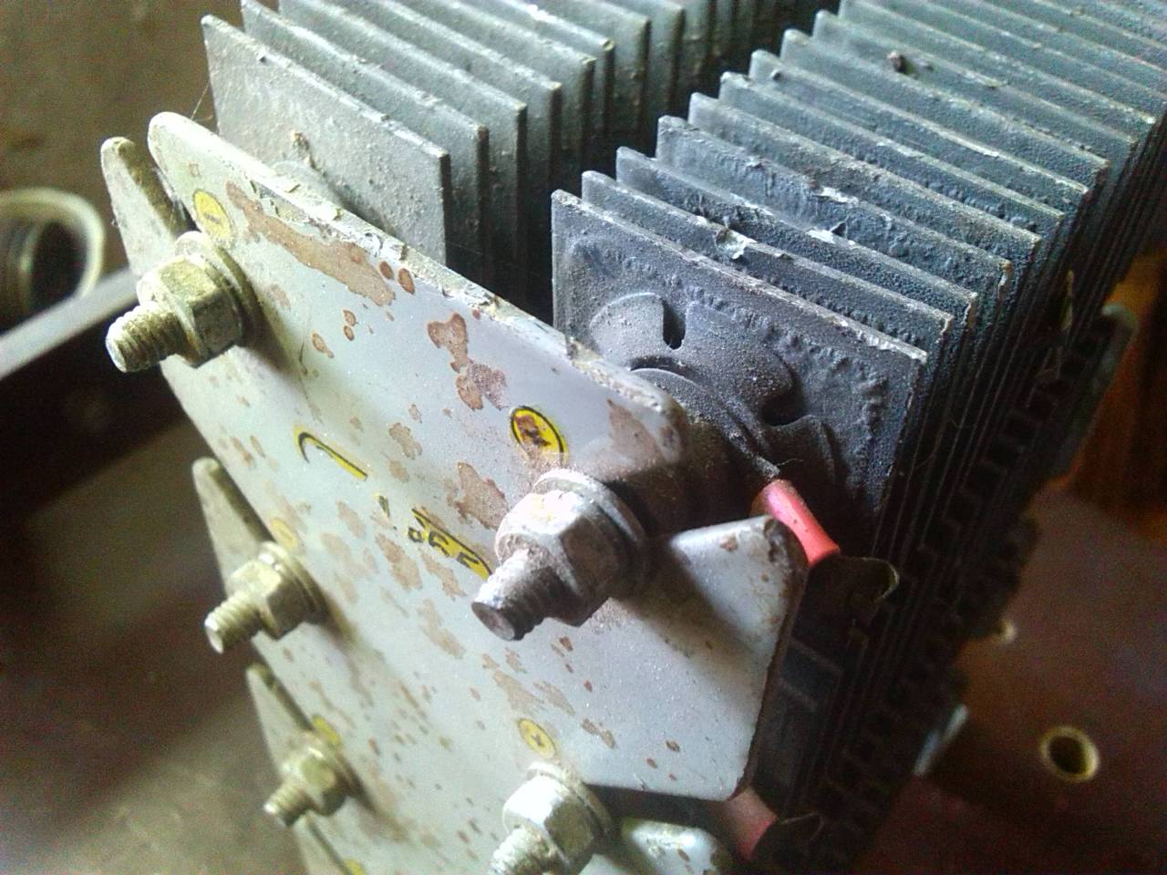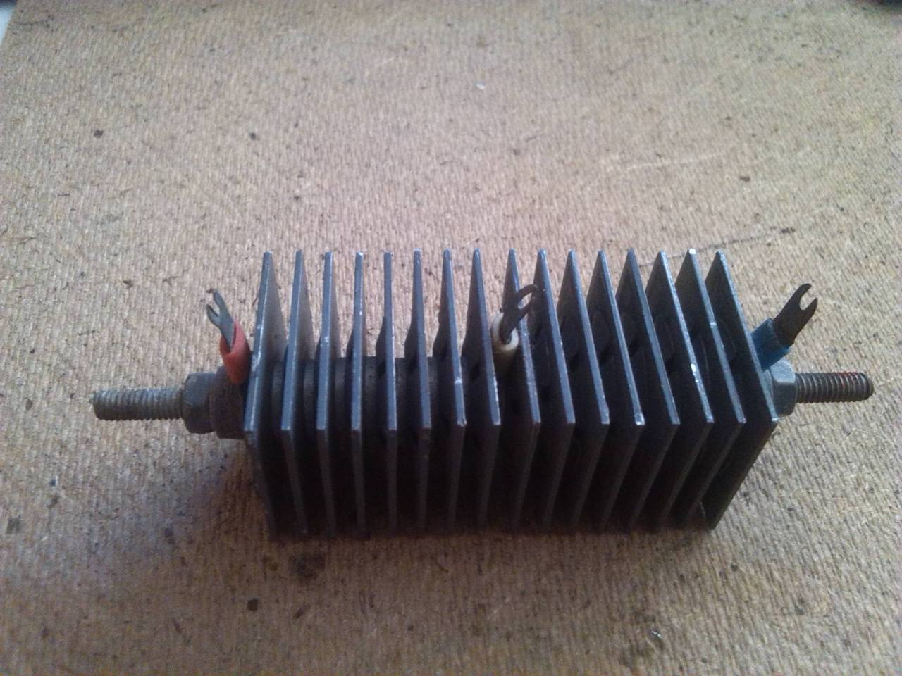 Az alábbi képeken talán egy szelén van. Hogyan kell ezt bekötni ? Egy piros, egy fehér és egy kék színű kivezetése van. Két lemez közé van befogva 4-4 darab a piros érintkezőnél a lemezen egy + jel van. Típusa: Tungsram AVSZ 25-5 HM