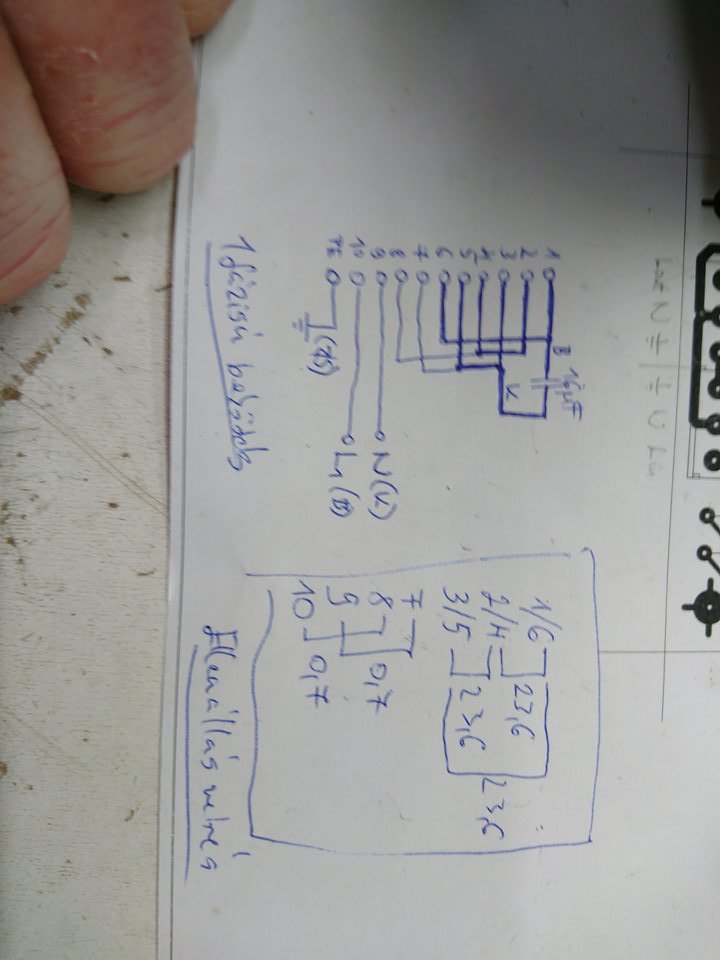 Van egy régi motorom (nem tudom jó-e) a mellékelt képek szerint van bekötve, van egy kapcsoló a kék-fekete vezetéken és egy nyomógomb a fehér-kék vezetéken. Ha bedugom a konnektorba búg de nem indul el, ha megnyomom a nyomógombot leveri a biztosítékot. (így volt bekötve nem nyúltam hozzá -lehet rosszul, meg kondija sem volt, nem tudom kell-e az és ha igen akkor milyen...) Mértem ellenállás értékeket a vezetékek között: fekete-kék: 4,5 Ohm fehér-kék: 5 Ohm fehér-fekete: 0,5 Ohm Előre is köszönöm segítségeteket.