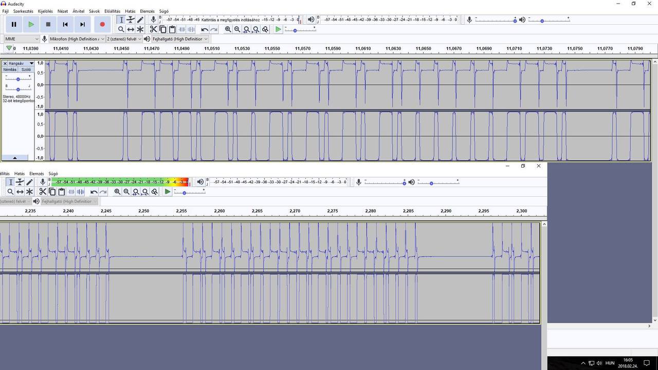 Első körben a hangkártya kimenetét rákötném a vevő kimenetére. Megnézném, milyen jelet ad a kapunyitó jelére. azután megnézném milyen jelet ad a kapásjelzőre. Ebből látszódna szerintem, hogy egészen más protokoll szerint működik a kettő. Ez után már csak egy probléma marad, megállapítani a protokoll nevét, és könyvtárat keresni ami jó hozzá.