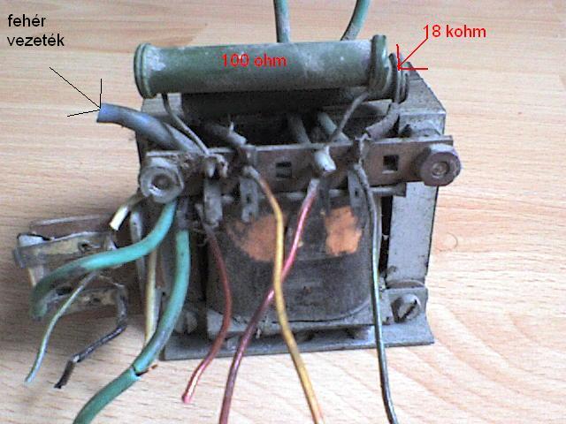 Nem tudom milyen rádió volt, mert amit a képen láttok azt úgy szedtem ki a dobozból, ahogy volt. Maga a rádió nem tudom hol van. Viszont bajban vagyok ezekkel a vezetékekkel. Oldalt van egy bizti egyik végén egy fekete vezeték másik végén egy fehér és egy másik, ami lóg a levegőbe. A fehér nagyon vékony a trafóba megy.Van még két fehér ami a trafóból jön ki. Van négy zöld, amik között mindenhogyan lehet mérni jó nagy ellenállást. A trafóból kijövő vezetékek belűlről kifelé: 1 fehér (lóg a levegőbe), 1 fehér (lóg a levegőbe), 1 fehér a biztihez, 2-2 zöld
