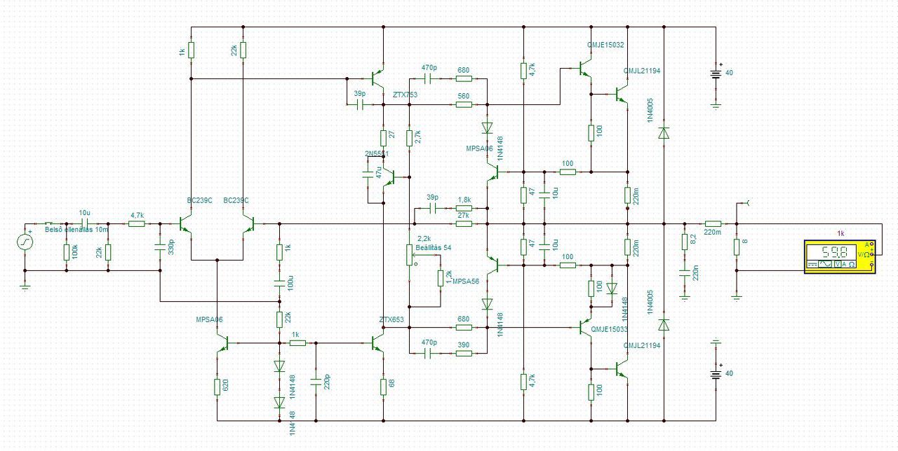 Tinában összeépítettem egy kapcsolást, egy AB osztályú erősítő. Ennek a tápellátására telepeket használok, melyek 40V-osak, de a gond az, hogy ha AC szimulációt indítok el rajta, akkor valamiért a 40VDC tápból 60V-ot akar kivezérelni ami baromság.