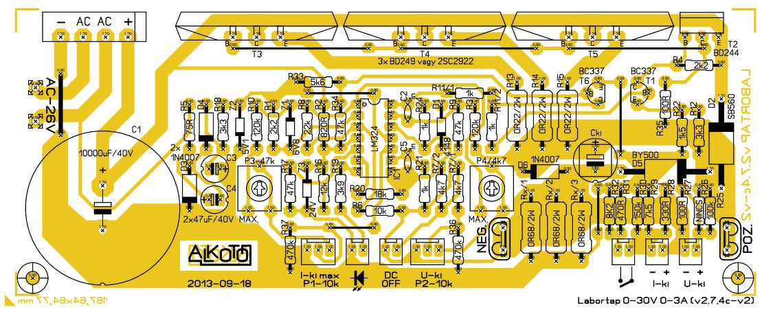 Megépítettem az Alkotó féle labortápot 2 példányban, a szerző nyákterve alapján. ( 0-30V/0-3A 2,7,4-v2)